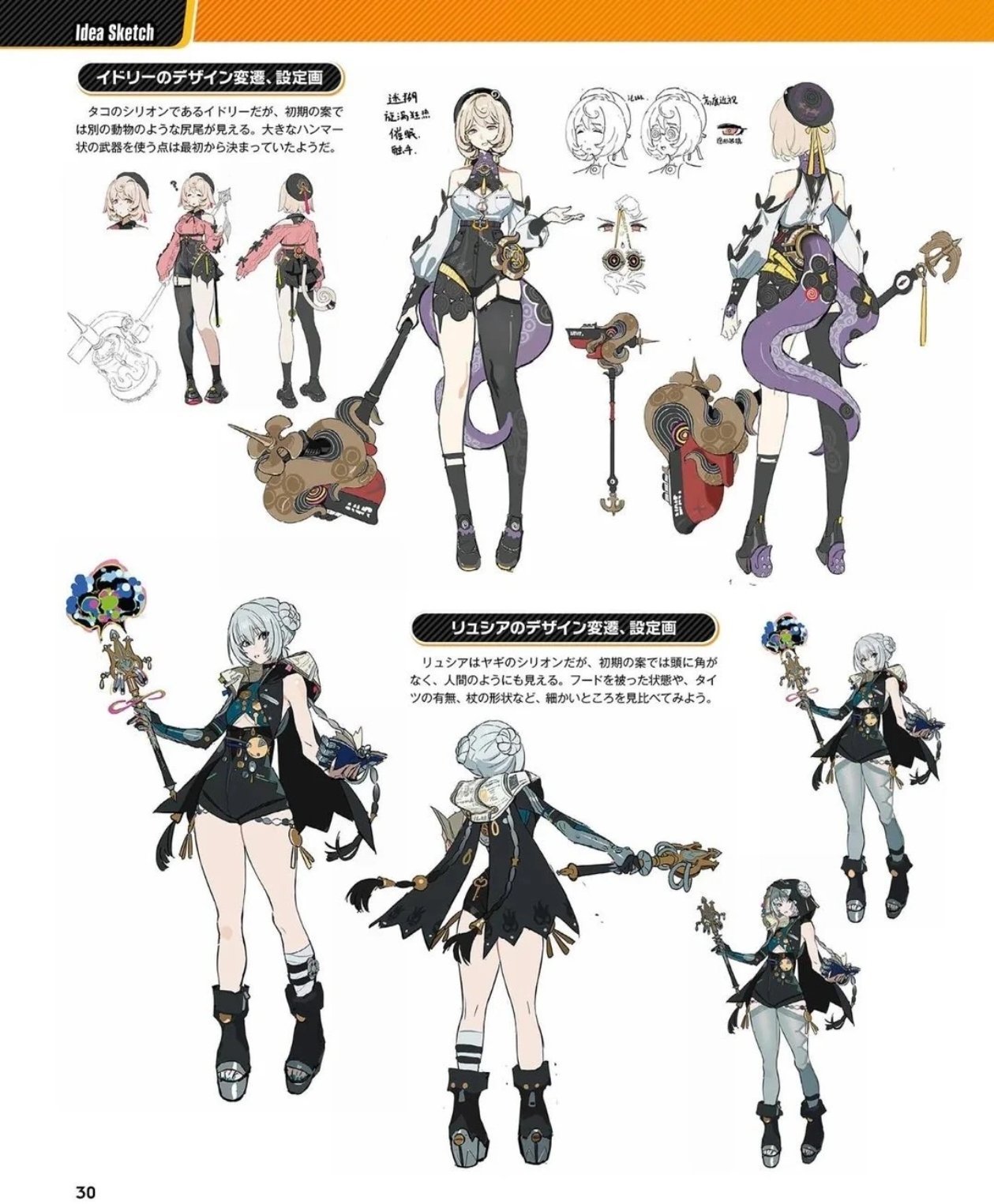 ■ 角色设计原稿:橘福福、潘引壶、席德、奥菲丝、狛野真斗、伊德海莉、卢西娅、般岳、叶瞬光、照