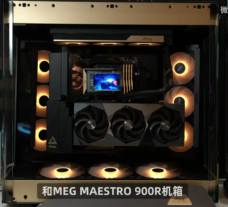 然后则是MEG系列最后两块拼图MEG CORELIQUID E15 360曲面水冷,MEG MAESTRO 900R 270°曲面海景房(鱼缸+1)这下可以组超神全家桶了