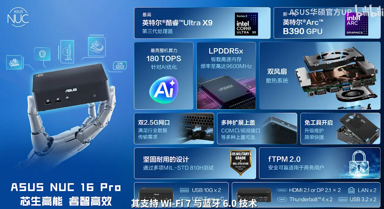 然后是华硕整机——华硕枪神10X,至高选配到9953+5090不得不说这机箱是真踏马真帅,可惜不单卖,配备全系投影风扇