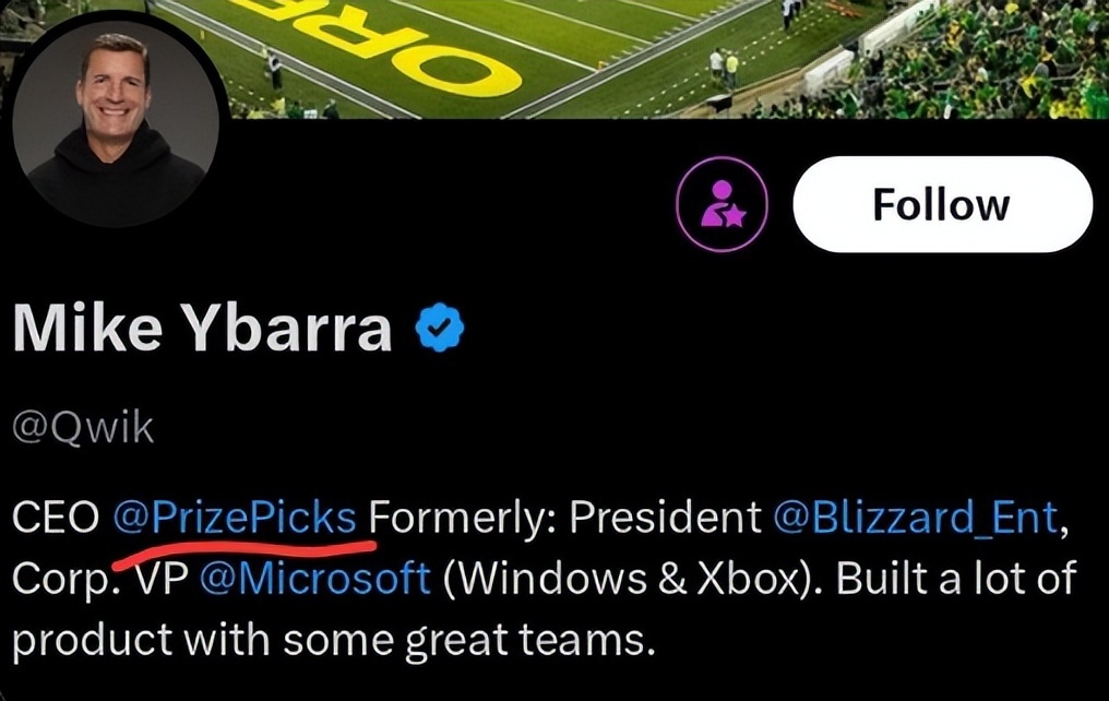 前暴雪游戏总监,确实现在正在担任PrizePicks网站的CEO。这个PrizePick类似Polymarks我们在《有资本重注3亿,押〈光与影:33号远征队〉稳拿年度游戏?》的文章里聊过,确实和博彩公司的业务有相当多共性。