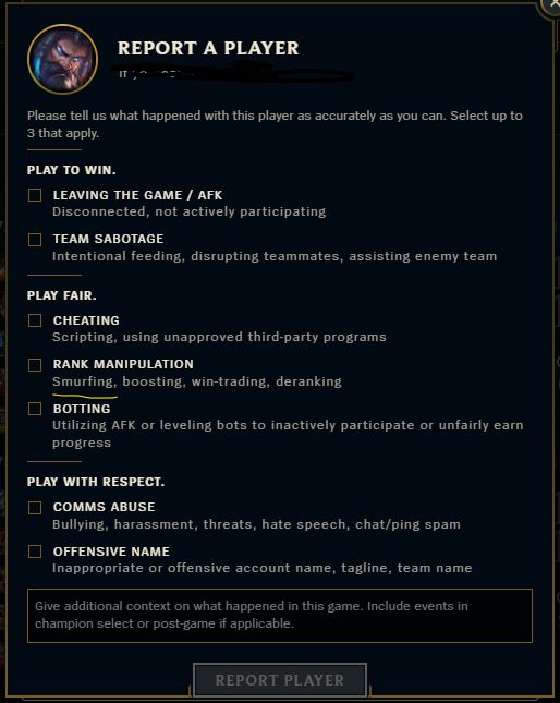 在联盟第16新赛季中:(排位操纵)举报选项中,现在将“炸鱼”列为游戏内可举报的行为。