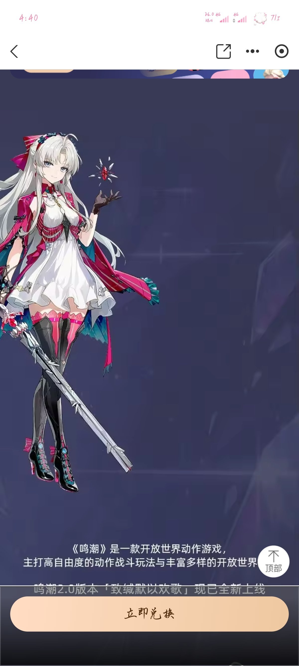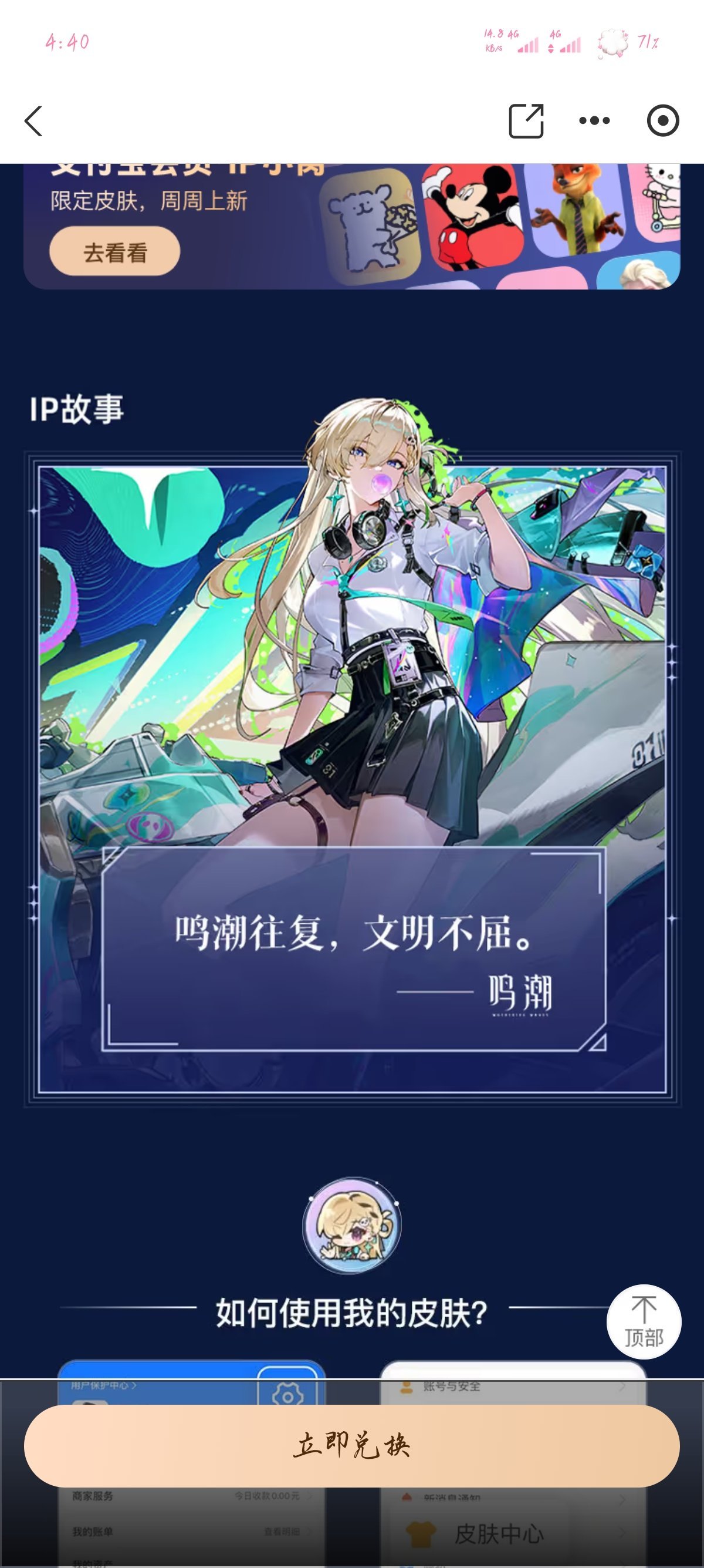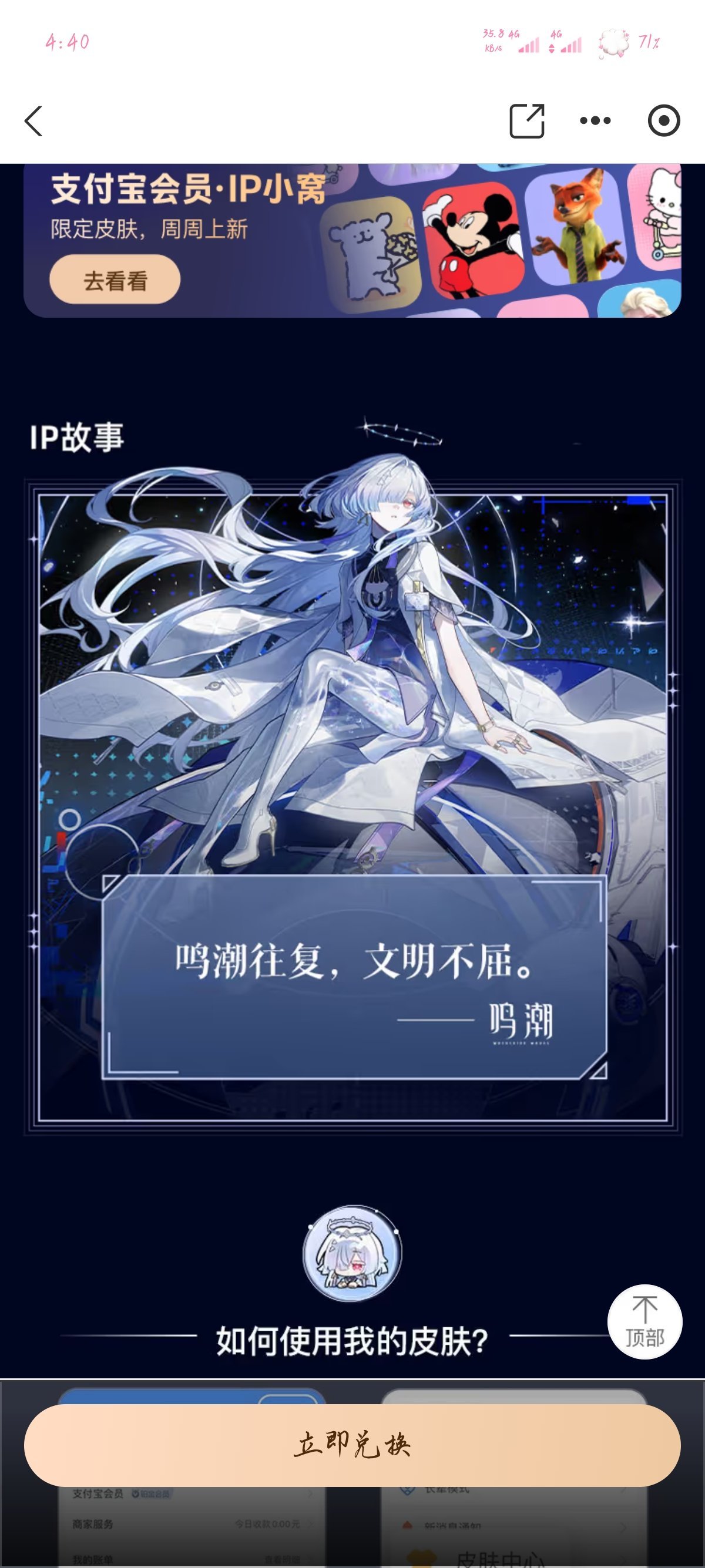 話不多說,支付寶鳴潮皮膚上新了,依舊是15塊錢永久解鎖,下面是圖片。