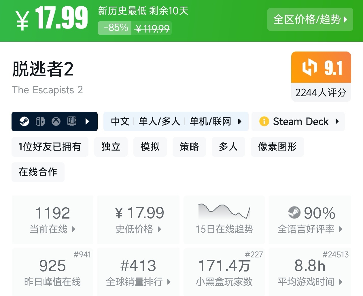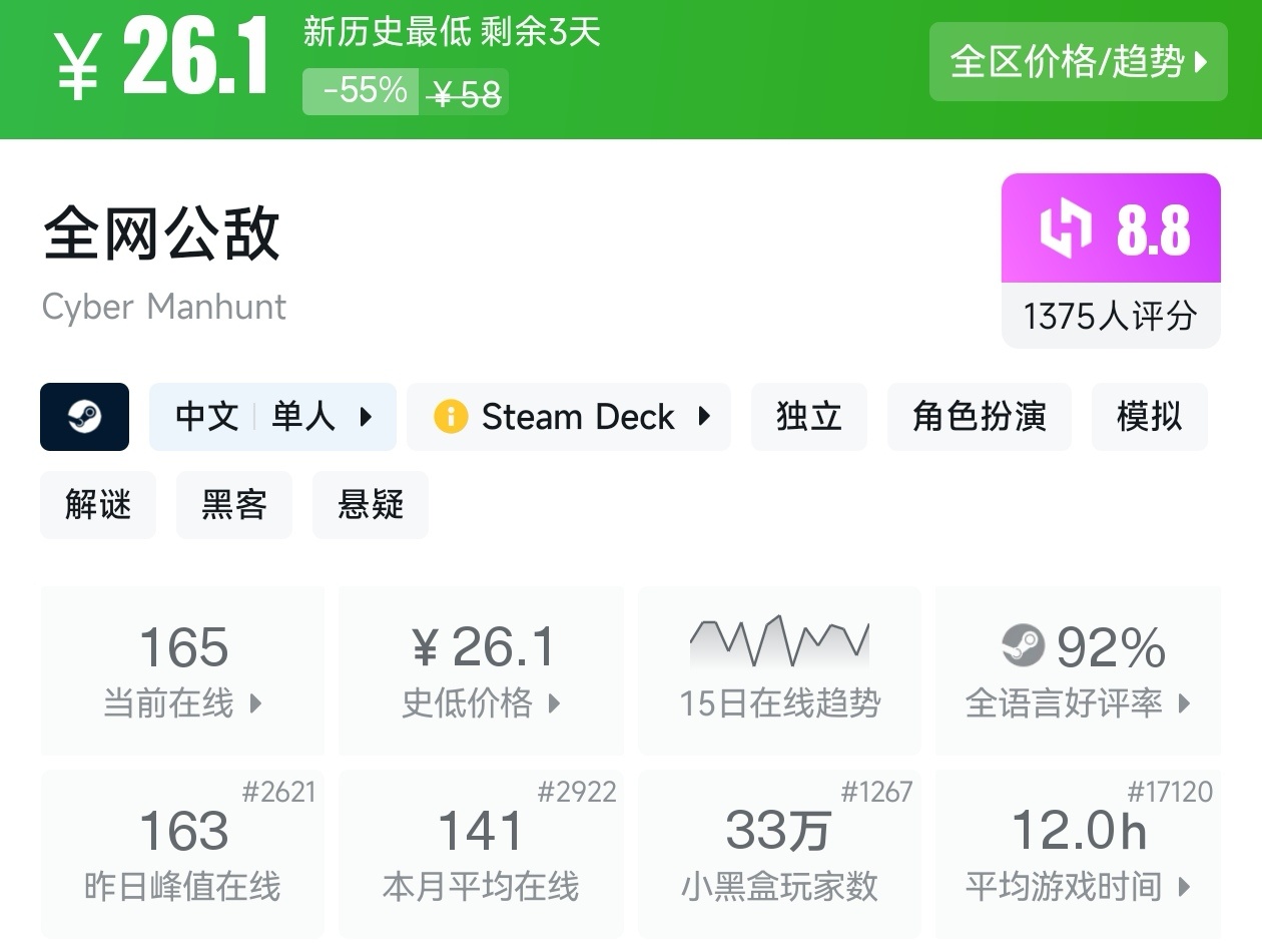 以上就是这期的折扣汇总,几乎涵盖了近期所有的新史低游戏,足足用了我一个小时。