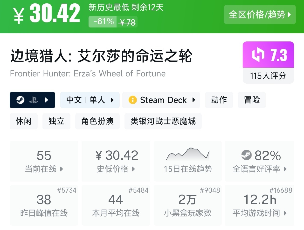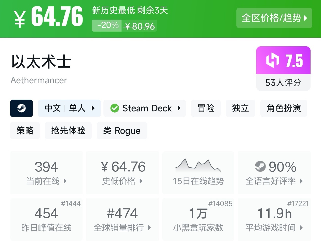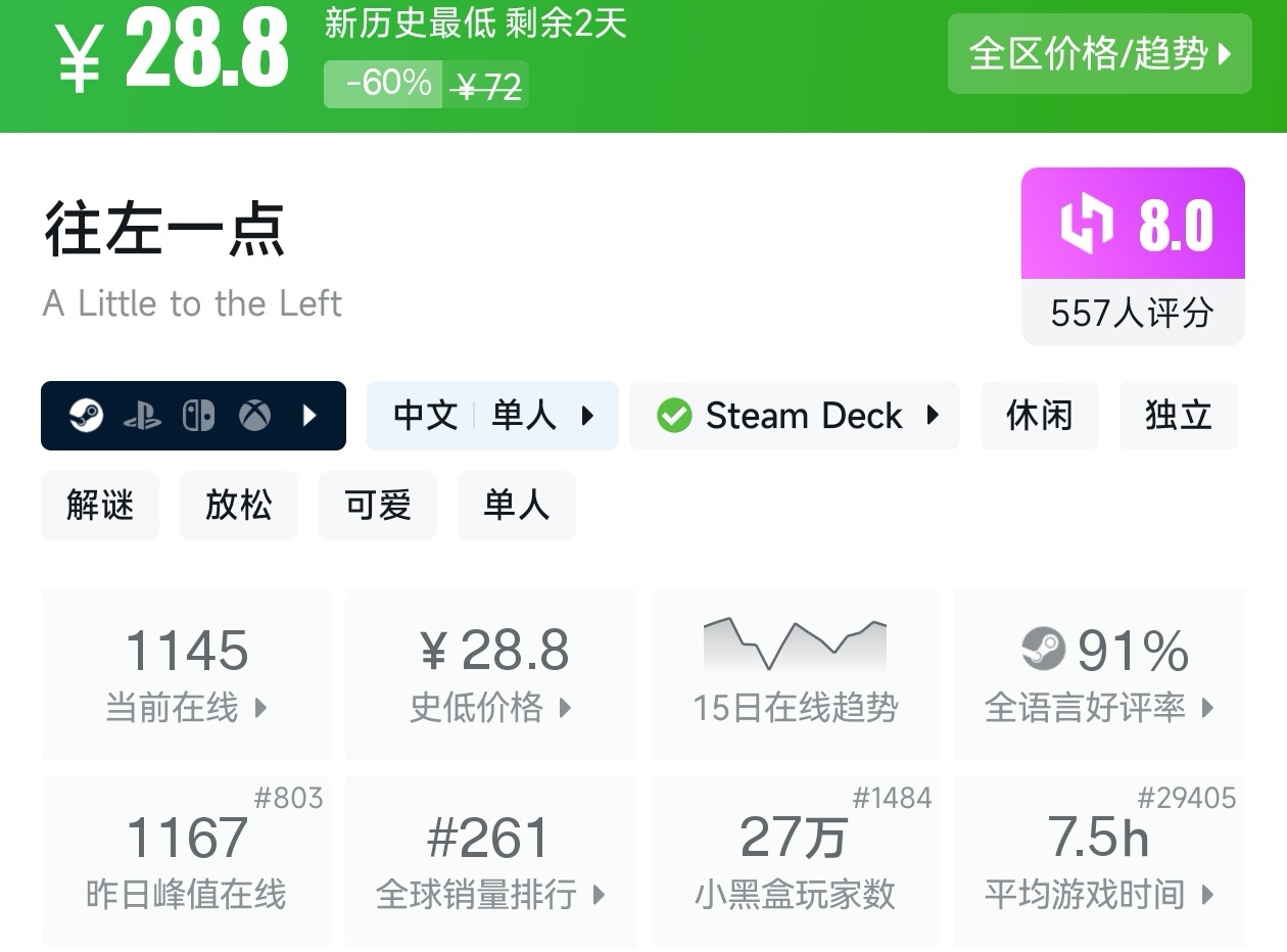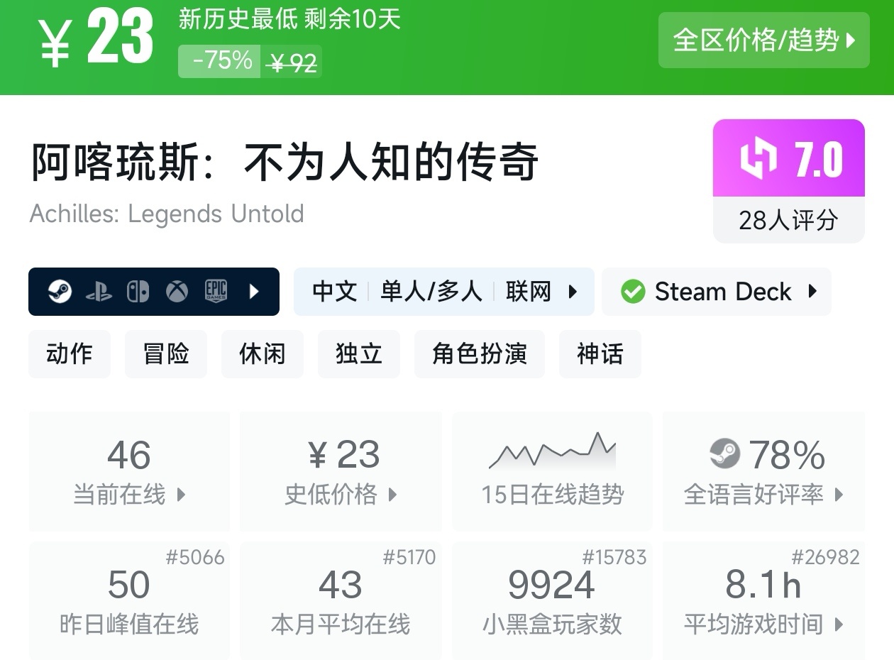 大家好,没错,又是我,你们的老朋友亦然,在最近,冬促已经过去几天了,但现在仍然有很多游戏都在折扣,其中就有很多新史低游戏,包括很多精品游戏,其实新史低的游戏买起来最有安全感,因为在很长一段时间都不会更低,我将为各位进行一个汇总,希望我的汇总,能够帮助各位盒友挑选心仪的游戏。