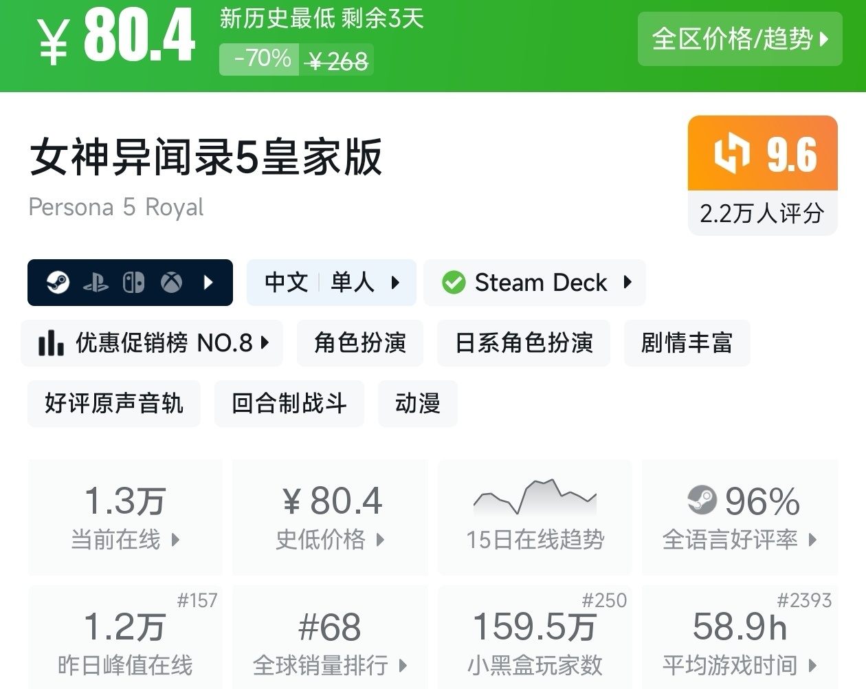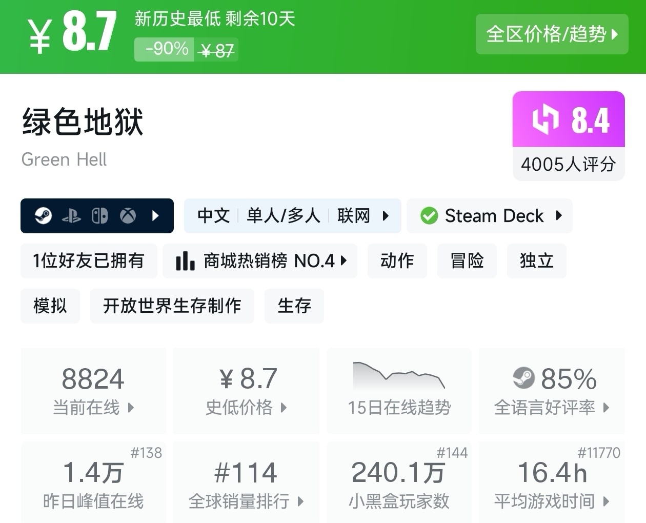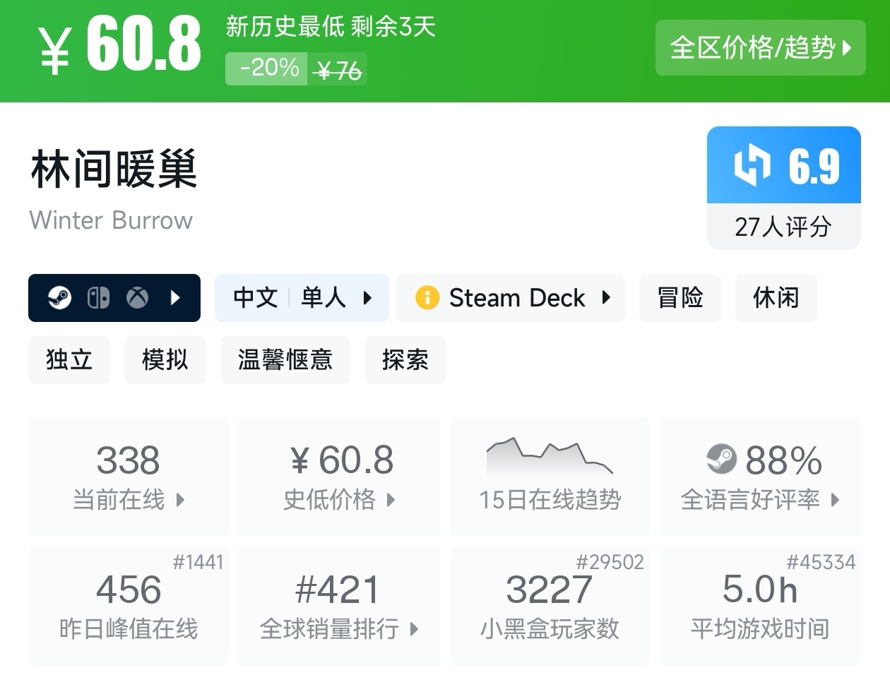 大家好,没错,又是我,你们的老朋友亦然,在最近,冬促已经过去几天了,但现在仍然有很多游戏都在折扣,其中就有很多新史低游戏,包括很多精品游戏,其实新史低的游戏买起来最有安全感,因为在很长一段时间都不会更低,我将为各位进行一个汇总,希望我的汇总,能够帮助各位盒友挑选心仪的游戏。