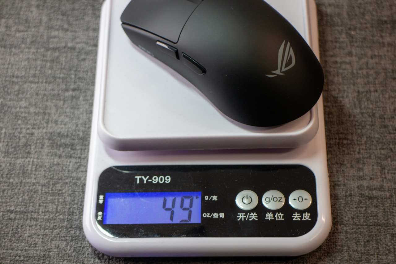 整体走的是轻量化设计,实测重量突破50g大关,来到49g,上手初步体感称得上轻鼠。