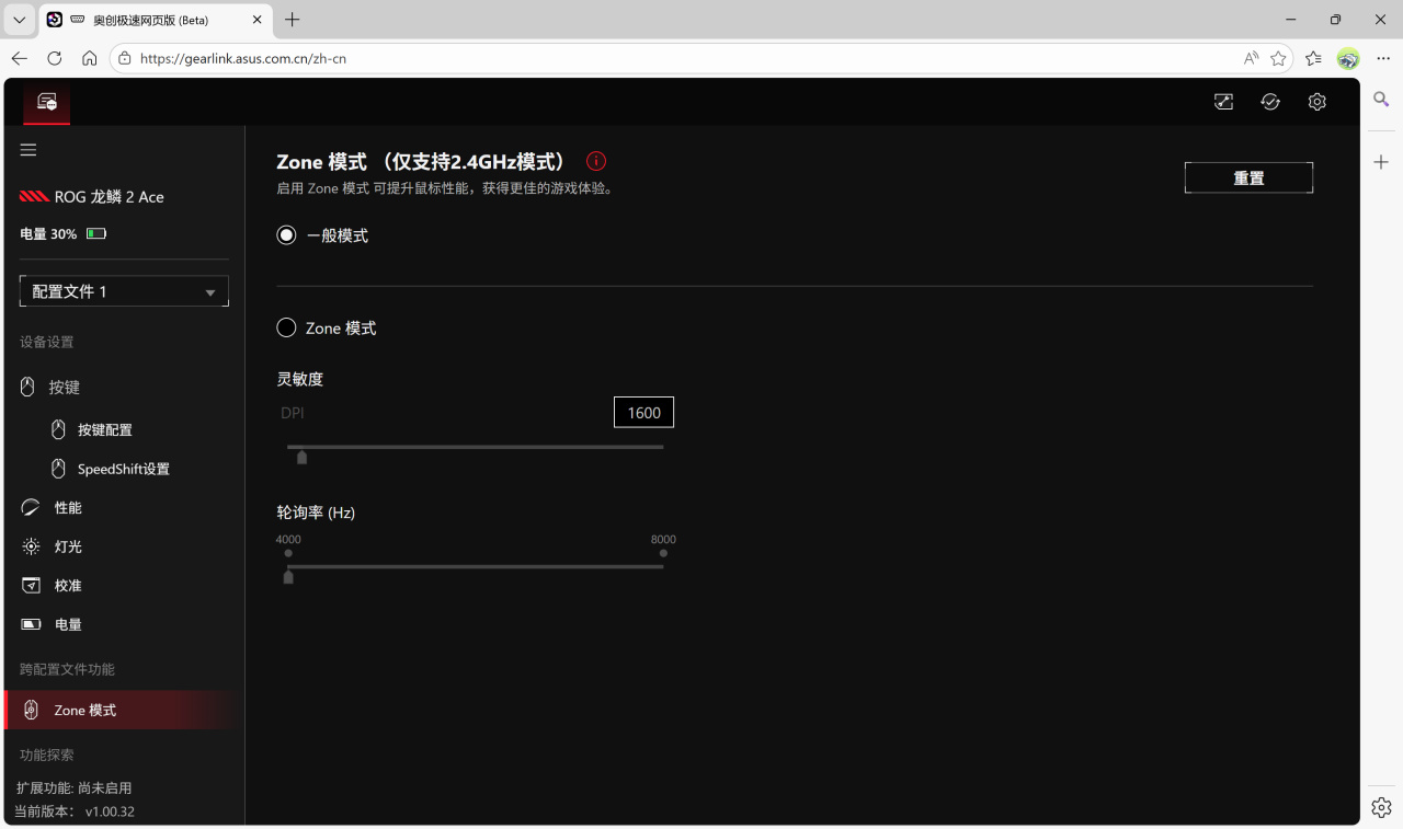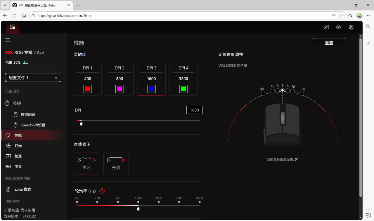 网页驱动功能也是完善的,不是敷衍了事的花架子。除了配置各类按键,设置参数等设置外,ROG的灯光设置也是不能丢的。