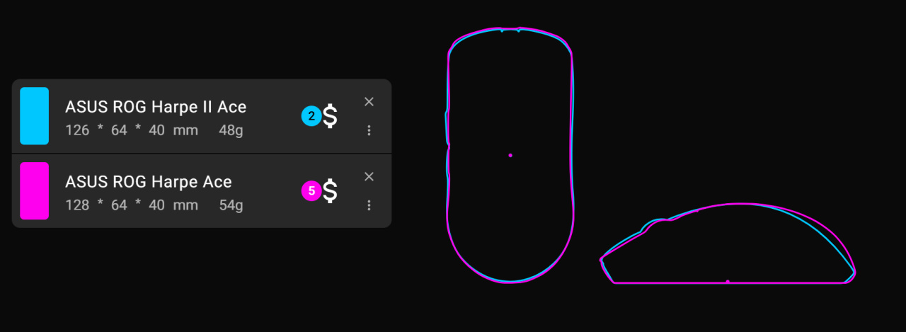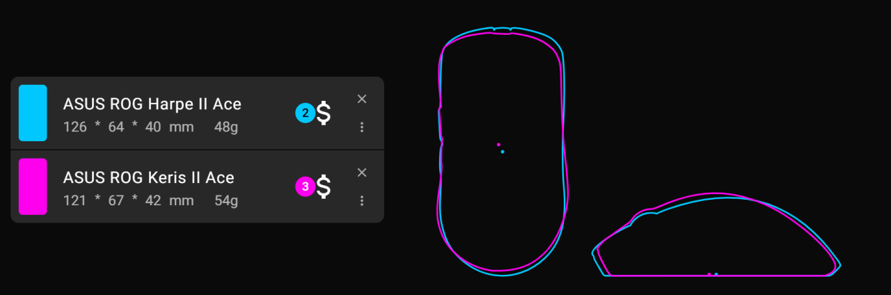 说到这,其实ROG家鼠标的产品线挺丰富,龙鳞就有Ace、Ace2(它俩模具略有不同)、以及Ace mini这三种SKU。