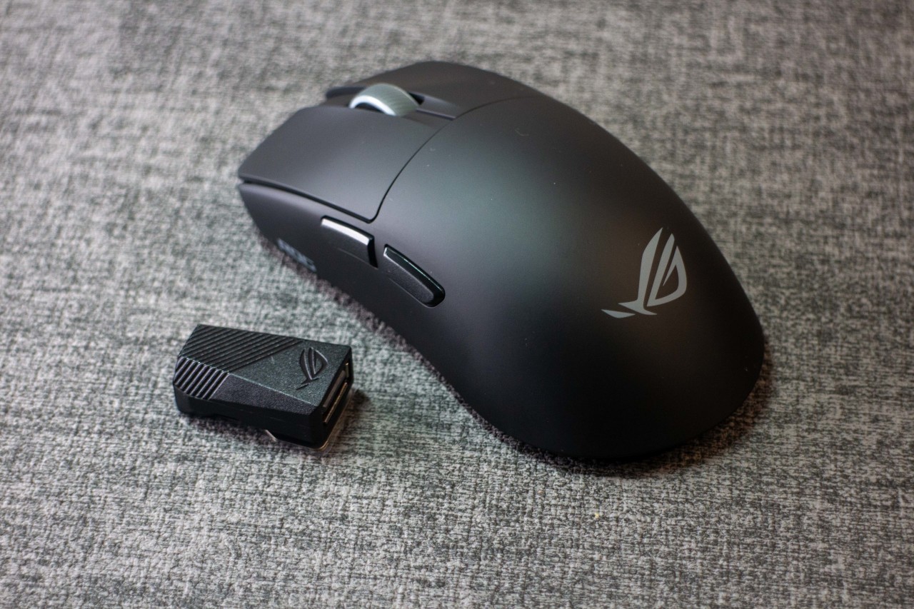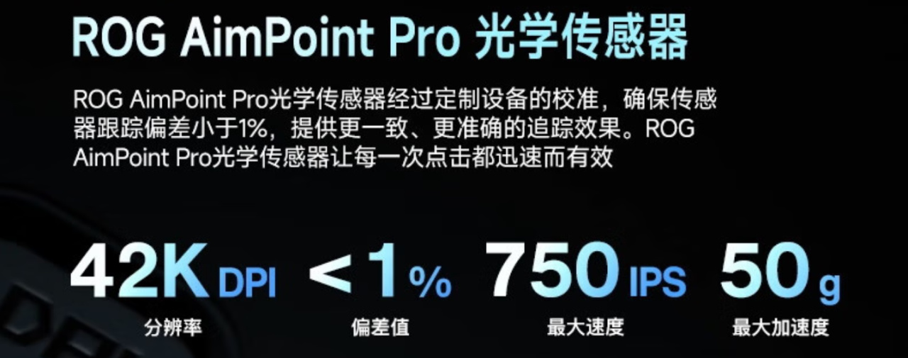 性能方面则是 ROG Aimpoint传感器Pro + 54H20主控的配置,双双拉满,支持最高42000DIP,支持8KHz回报率,而且搭配的还是常规的Nano小接收器(仅它就可支持8KHz回报率!),外出携带时,就没必要额外费心保存独立接收器了。
