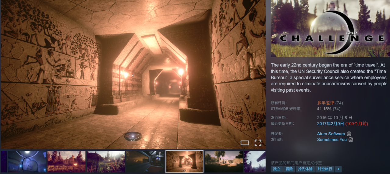 最后下架的《挑战》是一款穿越游戏,感觉还挺细腻的画面(UE4做的迷宫),评分崩了。设定了百年后的联合国时间署,加上这个画面,或许将来我会去其他渠道找找留存。