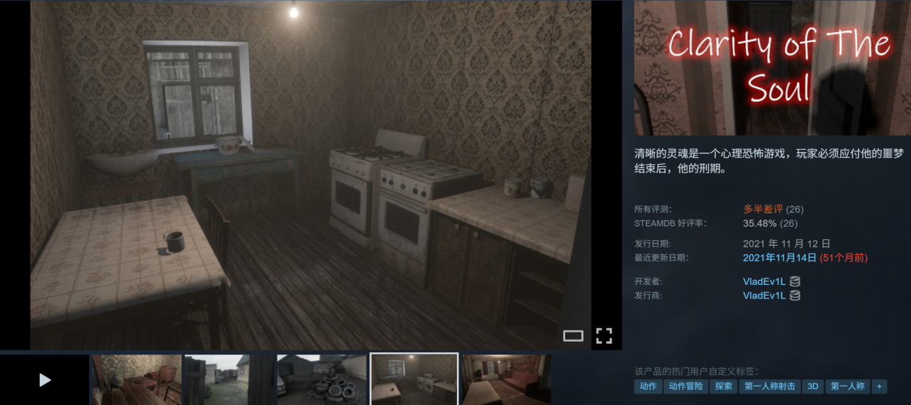 这款灵魂声明,画风看起来挺精细,没想到好评率35%,这周44度又热又累,就不去探索小众恐怖了,毕竟万圣节几家送那么多恐怖佳作还没玩完。酷极桶玩家可以入库,还没反悔,是免费入库。