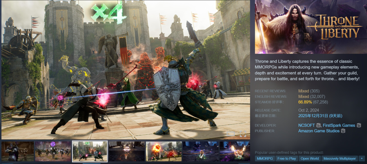 第二个系列是这款《王权与自由》的几个周年庆典包,进去发现已经没了购买按钮,本体是免费的没锁国区,这对亚马逊的游戏来说有点少见,因为之前评价是死活不做简中适配甚至锁区不给玩。