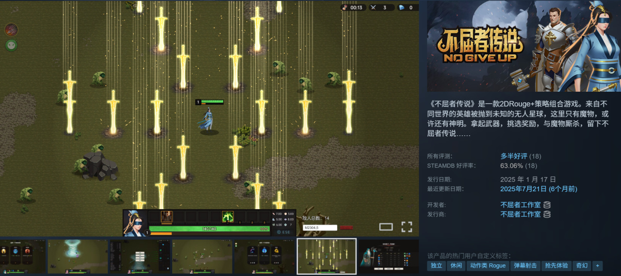 周末手速系列又来了,这次好奇怪,20个小时前就开始的周末免费玩,黑盒硬是没刷到消息,我上官网查才看到,大伙周末可以连玩三天了,这是沉寂了5周之后,Steam终于又有周末畅玩。这款游戏是90%好评肉鸽像素,原价68史低27.2元子,容量也不大,嗖的一下就安装完了。打开有惊喜,居然原生支持ps手柄震动!
