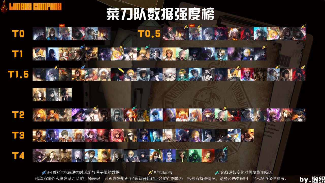 榜单为12回合手操菜刀队,并非P与体系队,没有队友、ego辅助,不考虑自身肉度辅助能力,不考虑短线,榜单排行并非绝对强度,根据环境会有所变化,数据仅1/2情况打2,数据均为控制变量,强度均正常手操即可达成,榜单仅供参考,切勿较真。