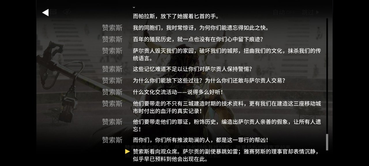 另外一组人就是米诺斯的愤怒青年摆渡人一行,两国停战不久,他们几个属于是战争中的受害者,无法理解米诺斯和萨尔贡交好,还要在重建国家重要遗址的活动中邀请以前敌国的官员来参加,于是准备暗中破坏这个活动。