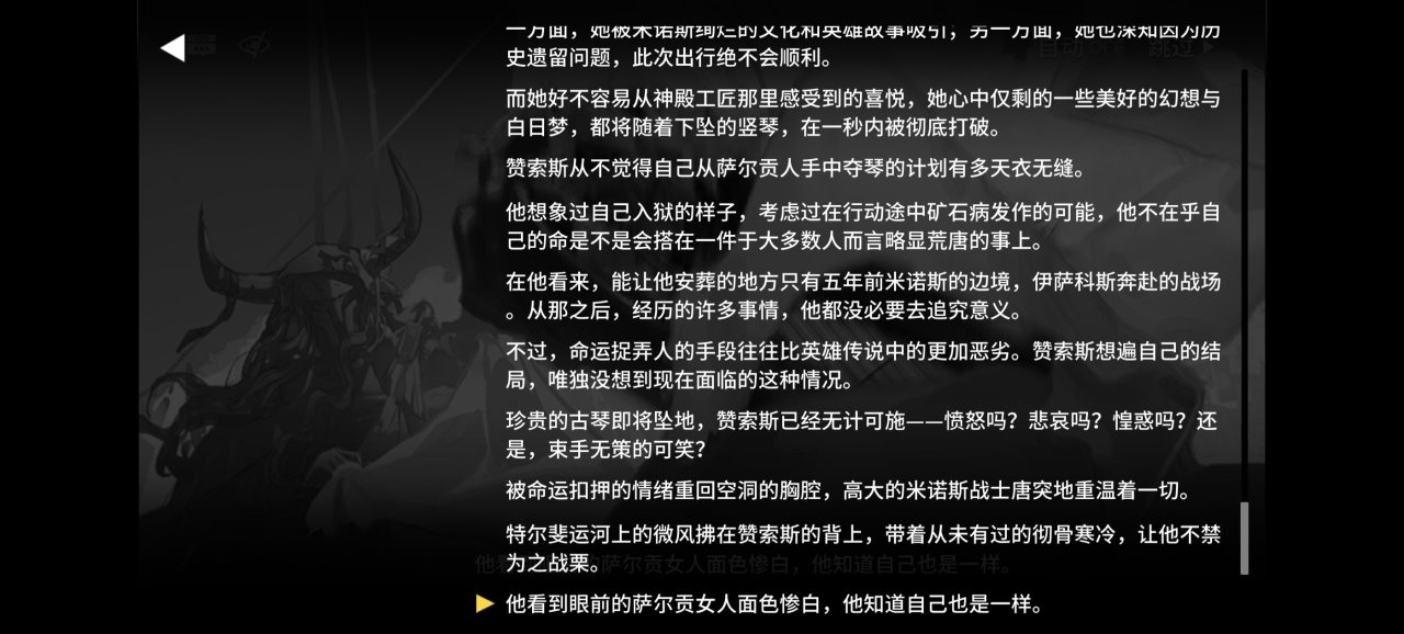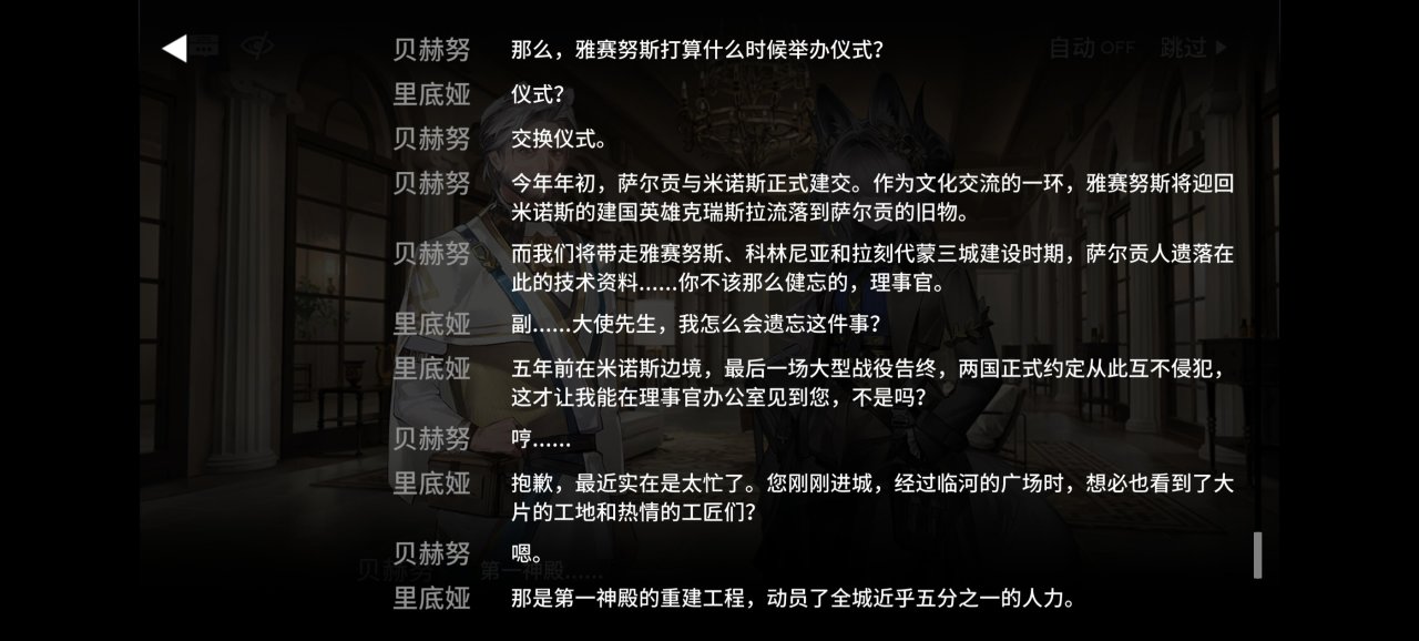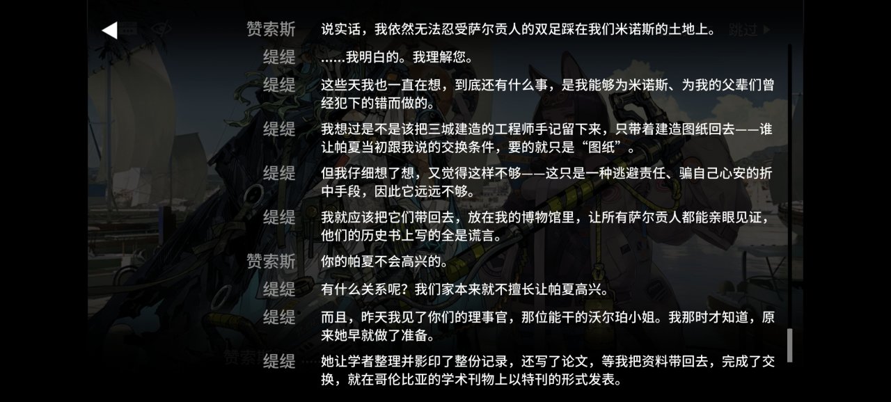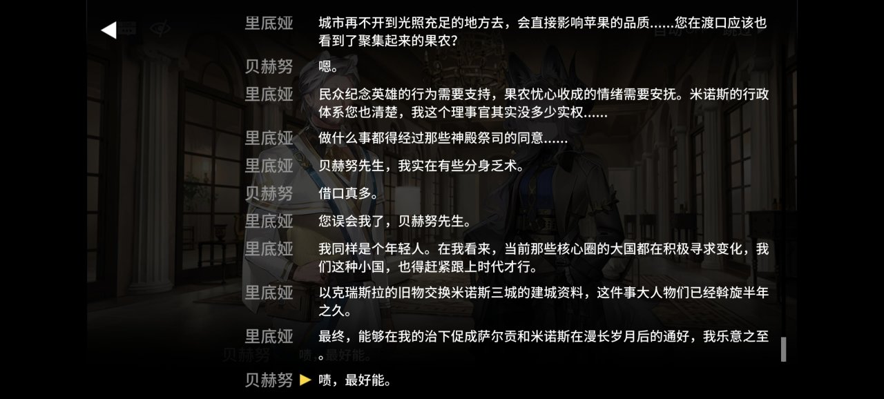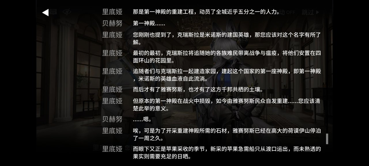 然后我们的新妻缇缇就是负责任务的出差人,她的任务就是把米诺斯英雄克瑞斯啦的竖琴归还给米诺斯,然后作为交换,米诺斯会交还一些萨尔贡遗留在米诺斯的技术资料。