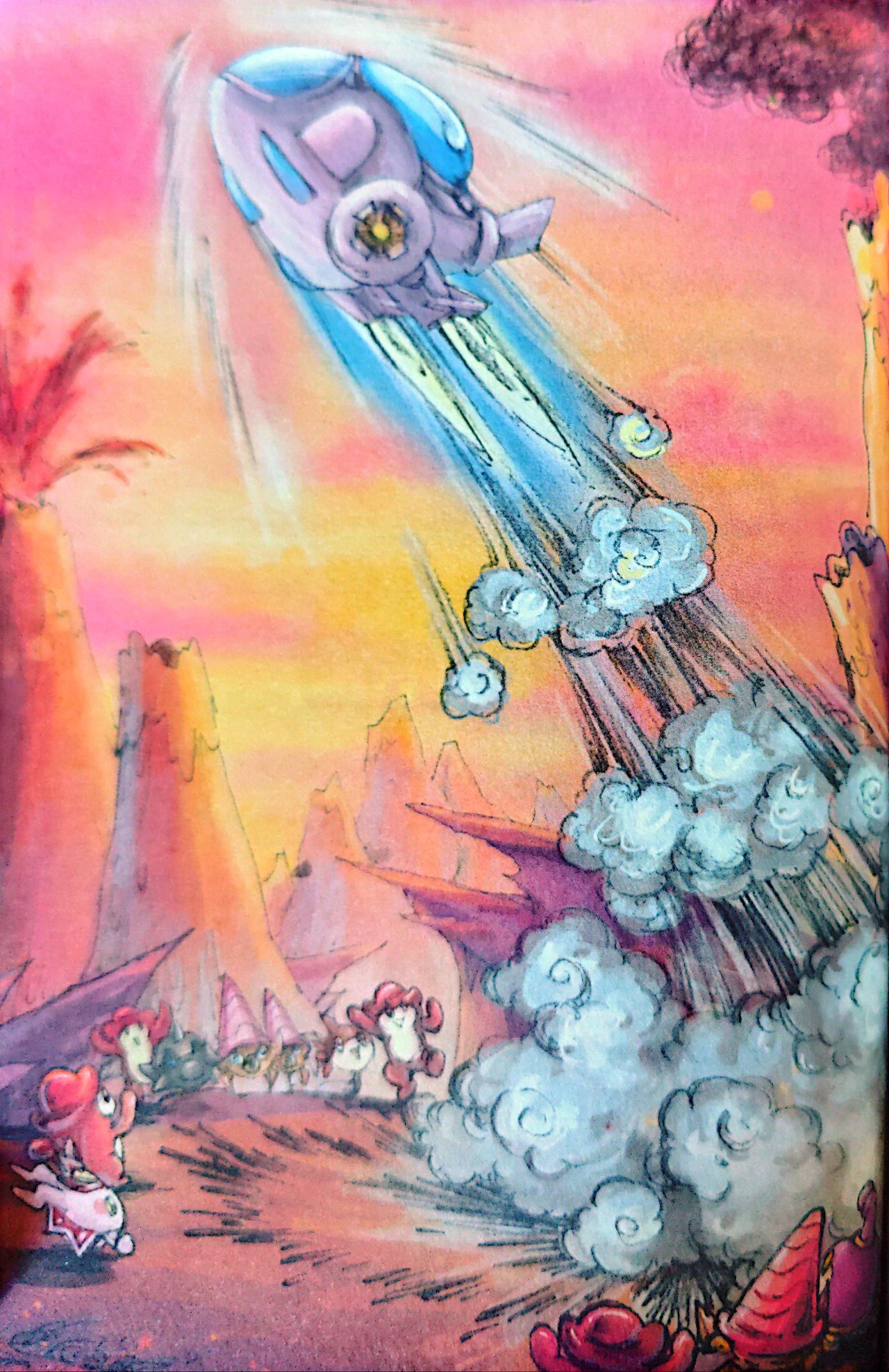 桑尼同意带上烈火猴,飞船迅速升腾而起,在小精灵们的加油声里,加满全速化做一道亮光,驶向塞西利亚星。