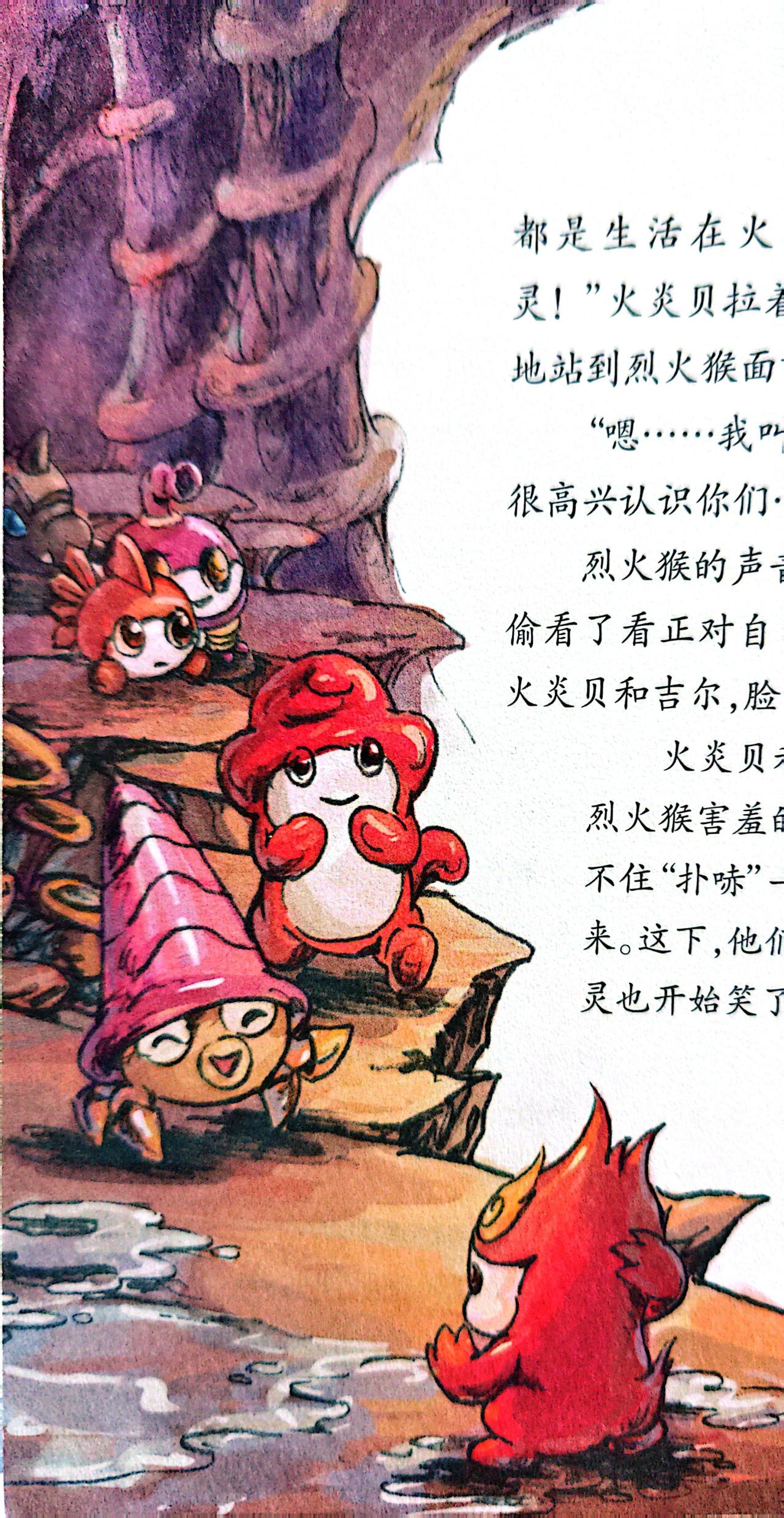 一股滚烫的热流升腾而出,朝精灵们袭来,就连身为火系精灵的它们都无法忍受。火炎贝缩进了壳里,以免自己被烫伤,一路翻滚着逃出山洞。