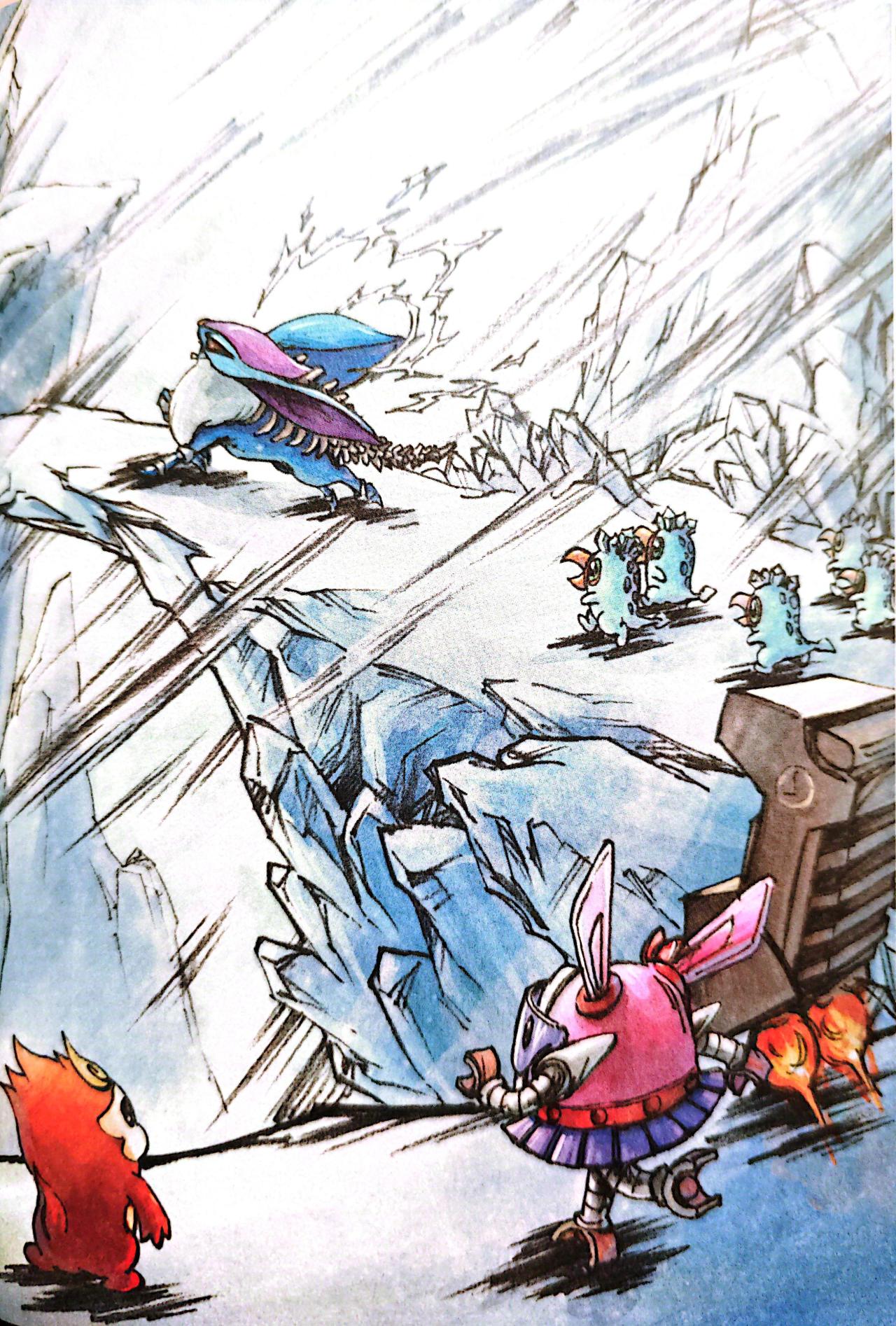 桑尼更加搞不懂情况了,但当务之急是追回记忆芯片,她们一路跑上冰川平原。这时,平原上正狂风大作,凛冽的寒风席卷着雪花几乎要遮蔽全部的视线。玄冰兽死死咬住芯片,怒斥桑尼这群“海盗”掠夺塞西利亚星、伤害了阿克希亚。