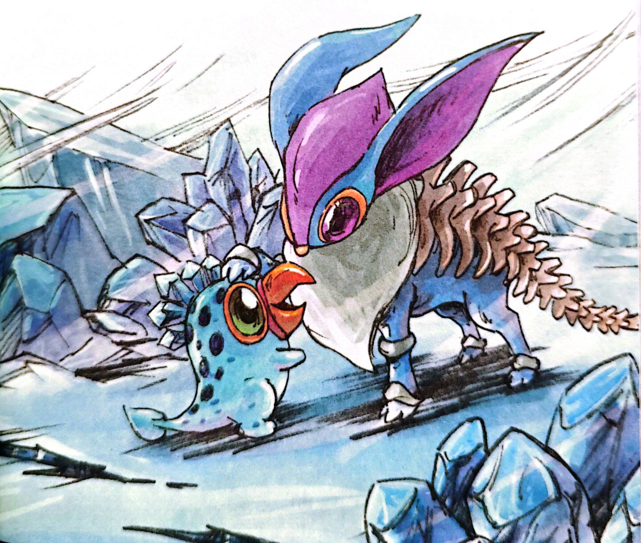 虽然还不知道阿克希亚发生了什么事,但桑尼相信只要她们伸出援手,玄冰兽也会相信她们的。玄冰兽领着她们来到一座雪山脚下,只见一只浑身覆盖蓝色皮毛、尾巴如同龙骨一样坚韧的精灵正在发疯一样的乱跑,阿克希亚不断释放技能,将整座雪山搅动的地震连连。