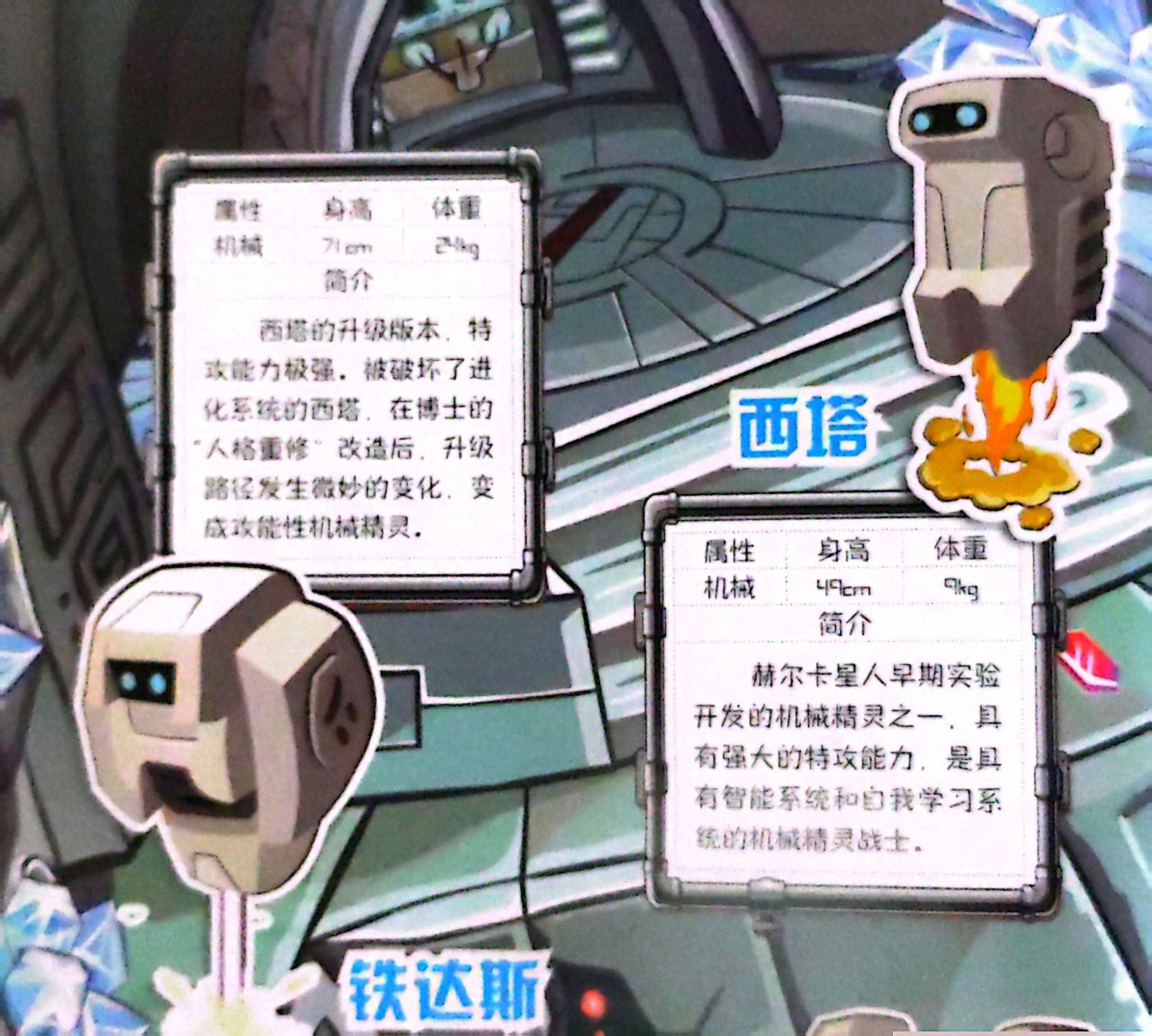 原来它的名字叫做“西塔”,是赫尔卡星人早期开发的机械系精灵之一,配备强大的攻击能力,是具有智能系统和自我学习的机械精灵战士。