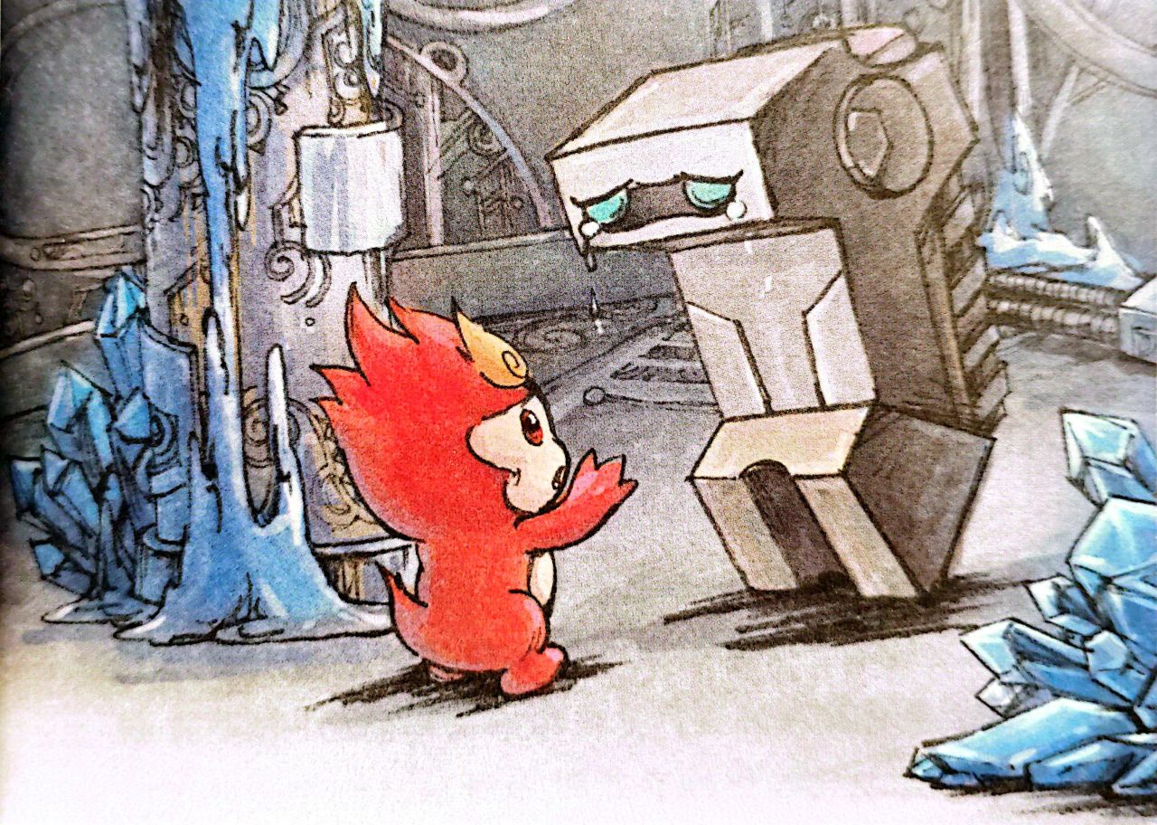回到冰洞,桑尼和烈火猴安装回了记忆芯片,随着黄色的眼睛扑闪几下,记忆不断在机械方块的脑中蜂拥而至。
