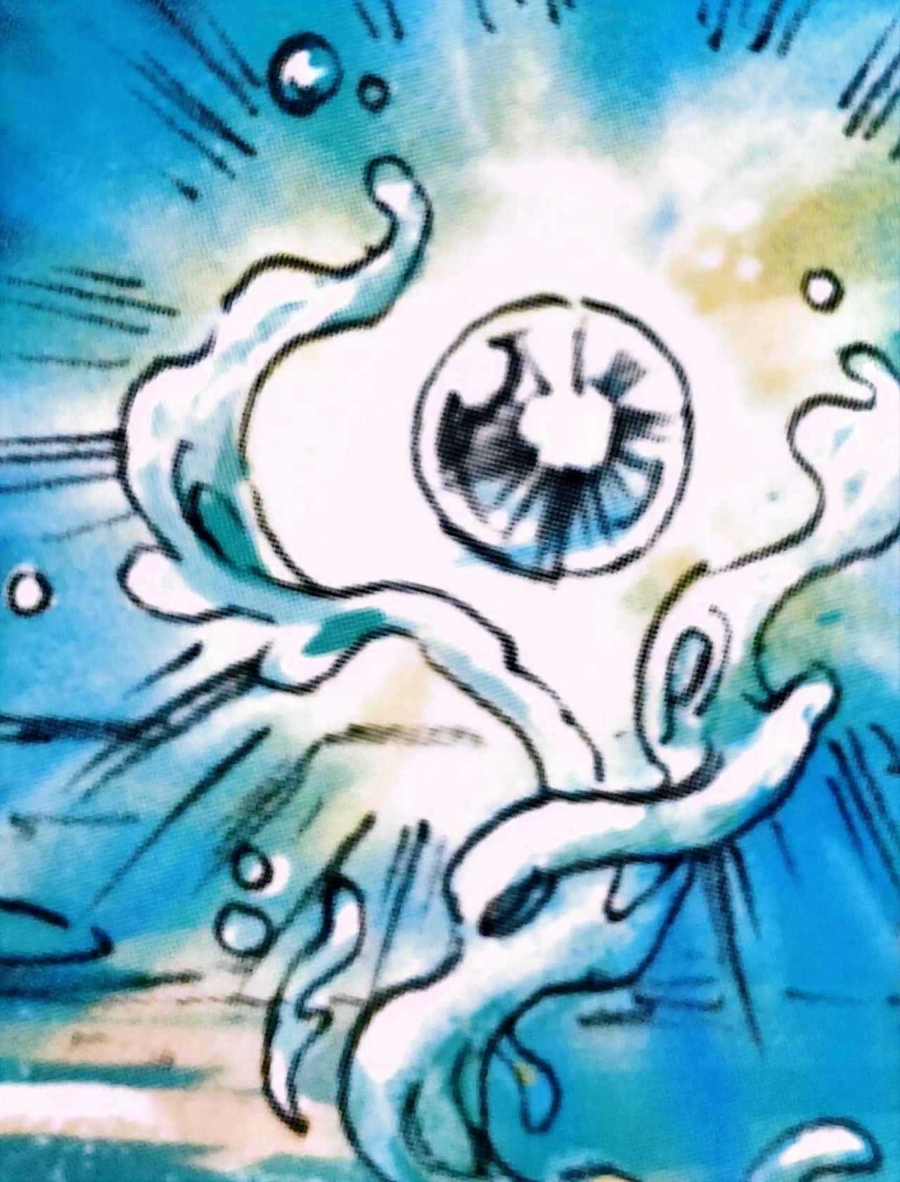 独眼龙拔出射线枪,和鲁加斯同时出招。然而笨重的鲁加斯刚举起拳头,就被阿克希亚迅捷的身影撞飞,独眼龙手里的枪也被它释放的冰点击落。阿克精元应声滚落,回到了阿克希亚的手中。
