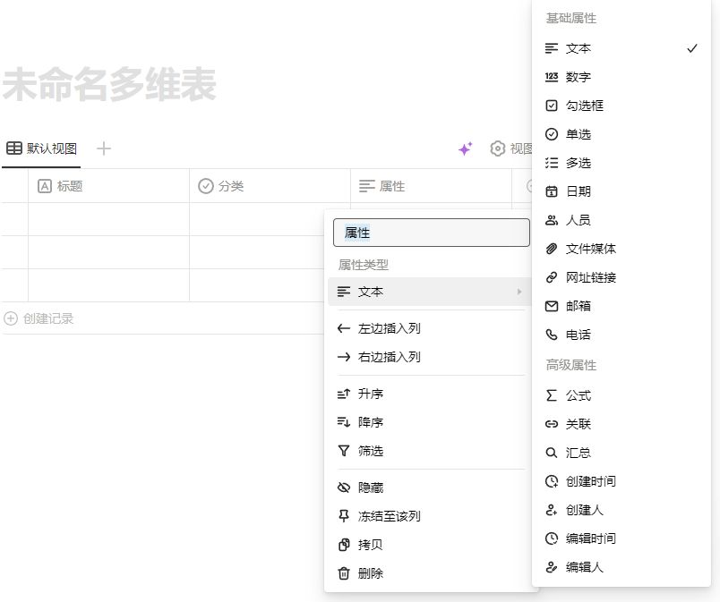 我能用到的主要屬性有:數字、單選、多選、日期。高級屬性裏的公式。