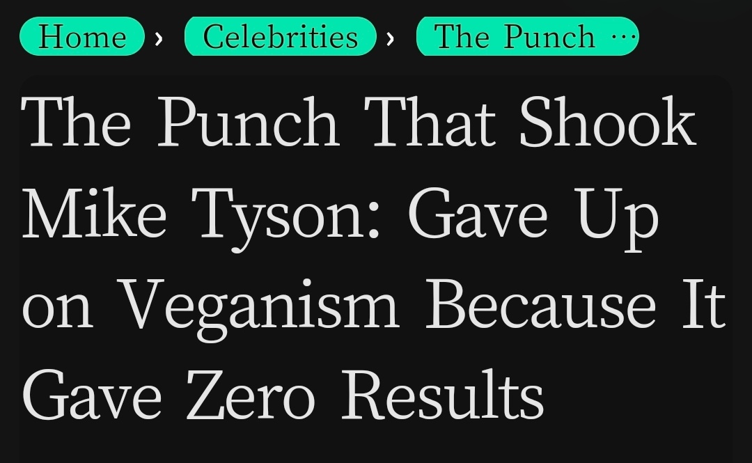 根据FandomWire的最新报道,拳王迈克·泰森最近公开表示,他已经结束了长达十年的素食生活,并坦言这种基于植物的饮食方式“失去了吸引力”,因为它无法满足他对体型和力量的需求。