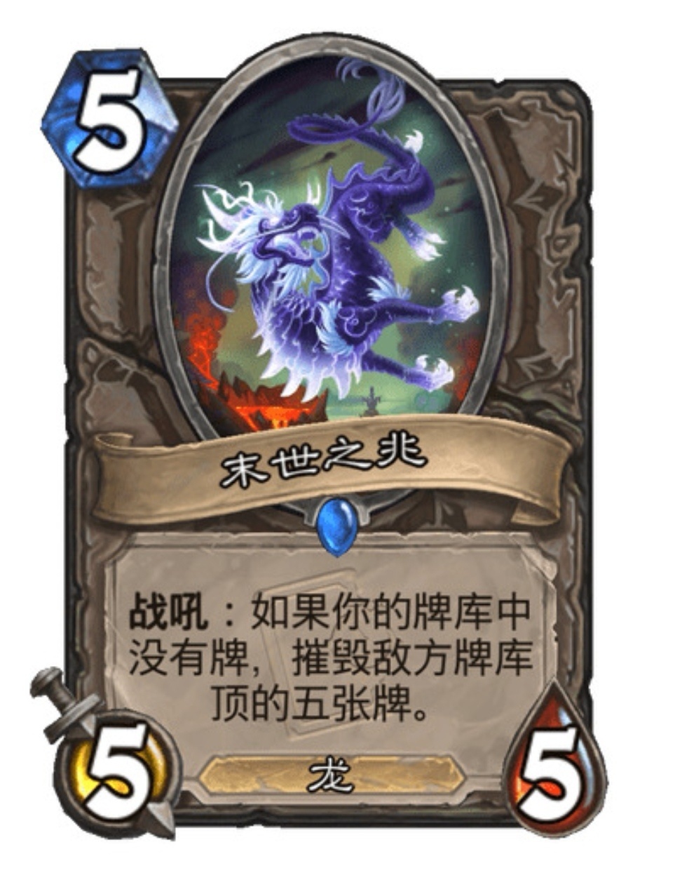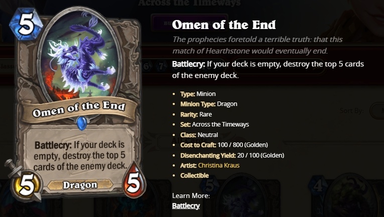 卡牌描述:The prophecies foretold a terrible truth: that this match of Hearthstone would eventually end.