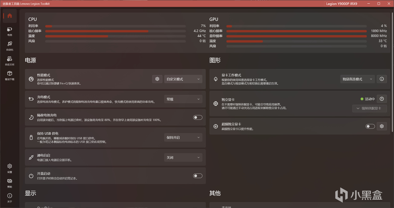 前面说过了,笔记本是拯救者Y9000P,拯救救系列白带的唯一 一个有点用的东西叫做Legion Zone,这里建议换成拯救省工具箱(Lenovo Legion Toolkit),这个比Legion Zone 好用简洁多了。