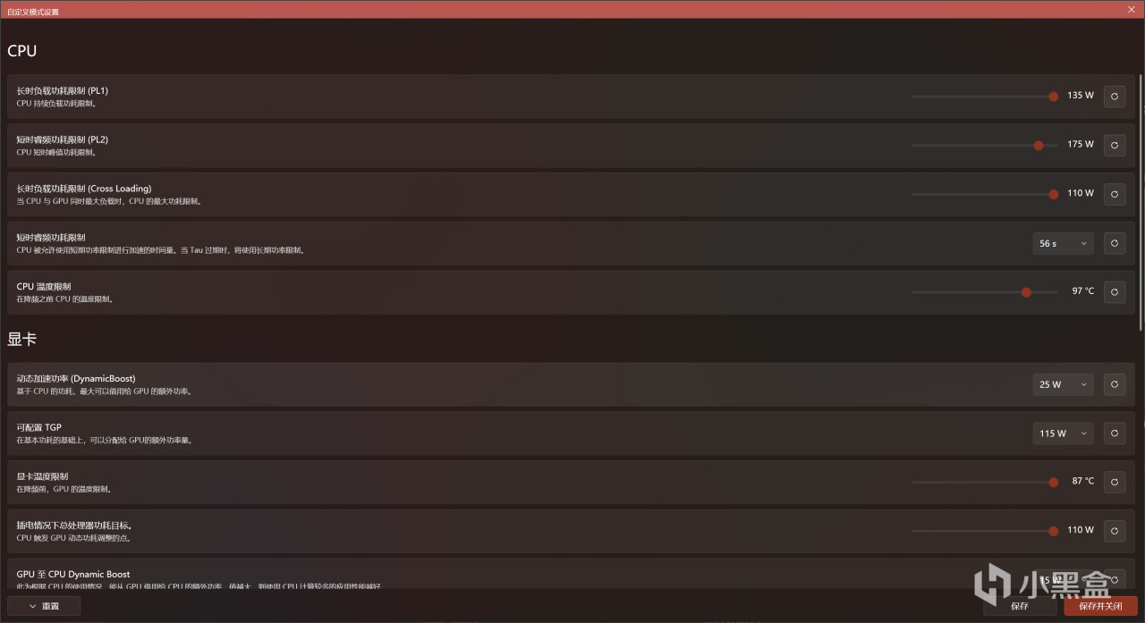 当然,如果只有这点功能,那不换也罢,在自定义模式中,将能耗大部分参数直接拉满满,这才是它应有的性能。因为我有外置散热器,所以无脑拉满即可,无额外散热设备的请慎重。