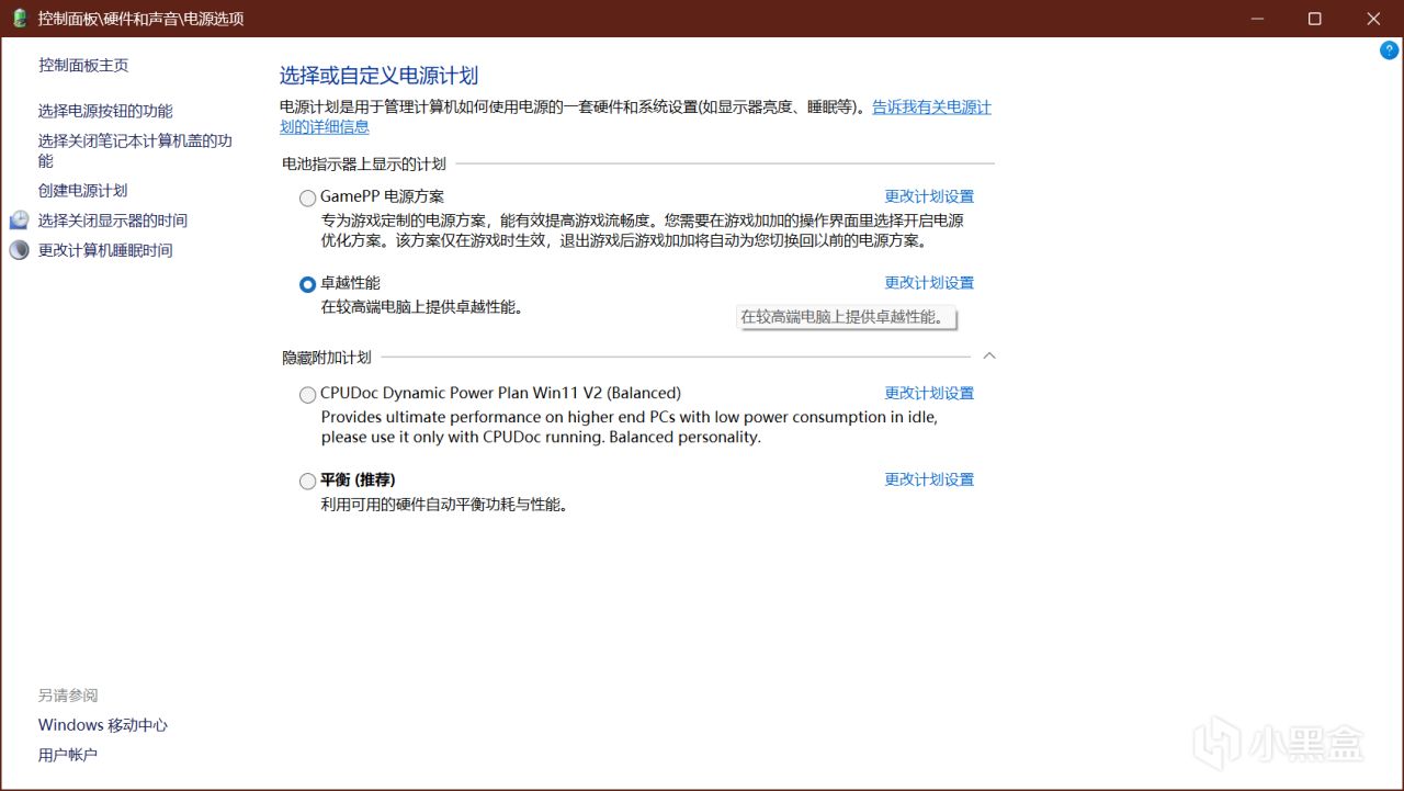 然后你就会发现:控制面版→硬件和声音→电源计划,里面有卓越性能模式模式,打开即可