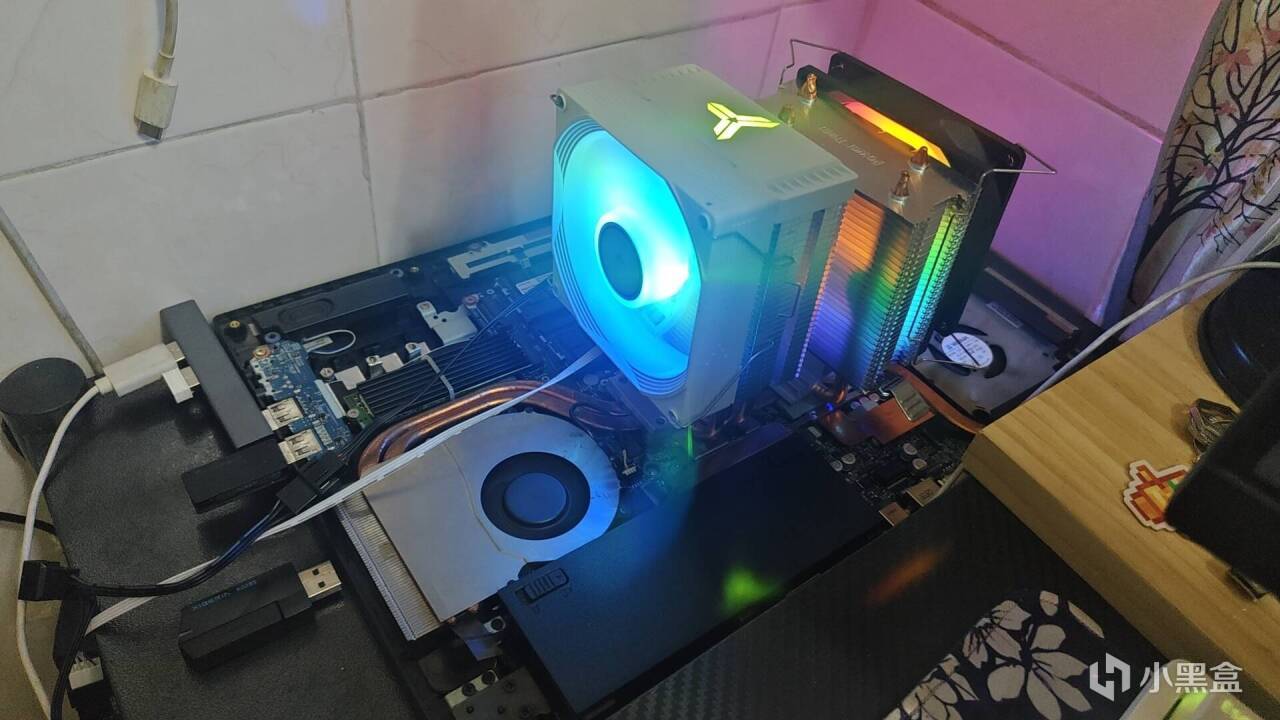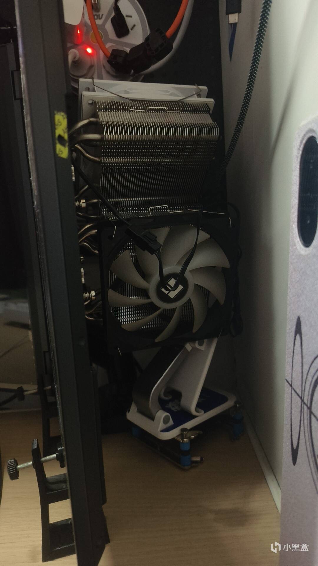 在此之外还有风压式散热器(侧立所以不考虑)、均热板(散热器)、开空调(环境调节)等,这里不作讨论,本次演示的是加装两个四热管风冷散热器,LGA1700的扣具,型号是利民的AX120RSE-ARGB。海鲜市场淘的二手,30一个,顺便问老板多要了俩风扇扣具,帮朋友机箱换风扇的时候他旧的便宜卖我俩准备装上,虽然最后也因为角度问题没装上就是了。