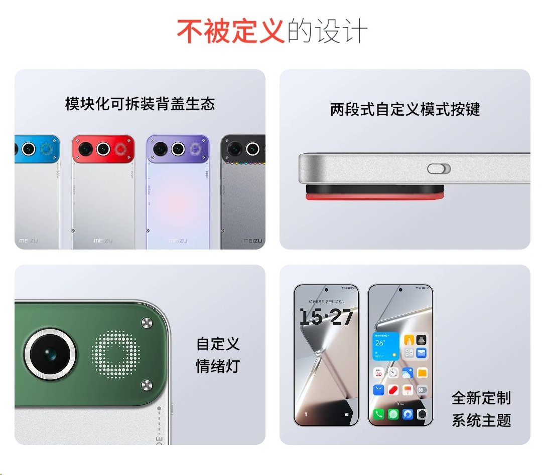前卫设计之下保留怀旧感,魅族 22 Air 采用两段式自定义模式按键;