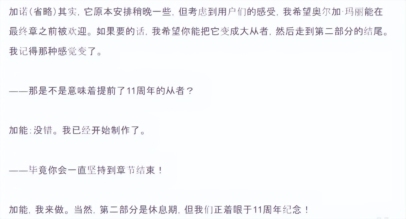 当然啦,FGO会不会关服这种事情我是完全不担心,毕竟运营都十年了这么大一个商业IP摇钱树,就算蘑菇摆明了在访谈里说他不想写了想给故事一个结局,那这也不是他单方面就想撂挑子甩手不干的事情,十周年庆的采访中叶良树也早就说过他们已经在开始制作11周年的从者,这FGO单出各种活动剧情也是该转还是得转,他崩就崩在月球人们受到“心灵创伤”后像一个火药桶一样,大伙儿太需要一个关于完结后未来企划的定心丸,然后就被蘑菇大人又踹了一脚导致炸了。