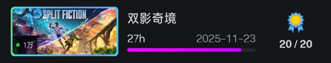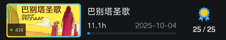 生活原因寫晚了些,總體是遊戲和寫作的一個總結。種種原因還是有很多創作計劃擱置了,希望26年穩定下來之後,可以有餘力去完成它們。今年的白金相比去年多了些。尤其是年末衝擊盃賽白了很多。