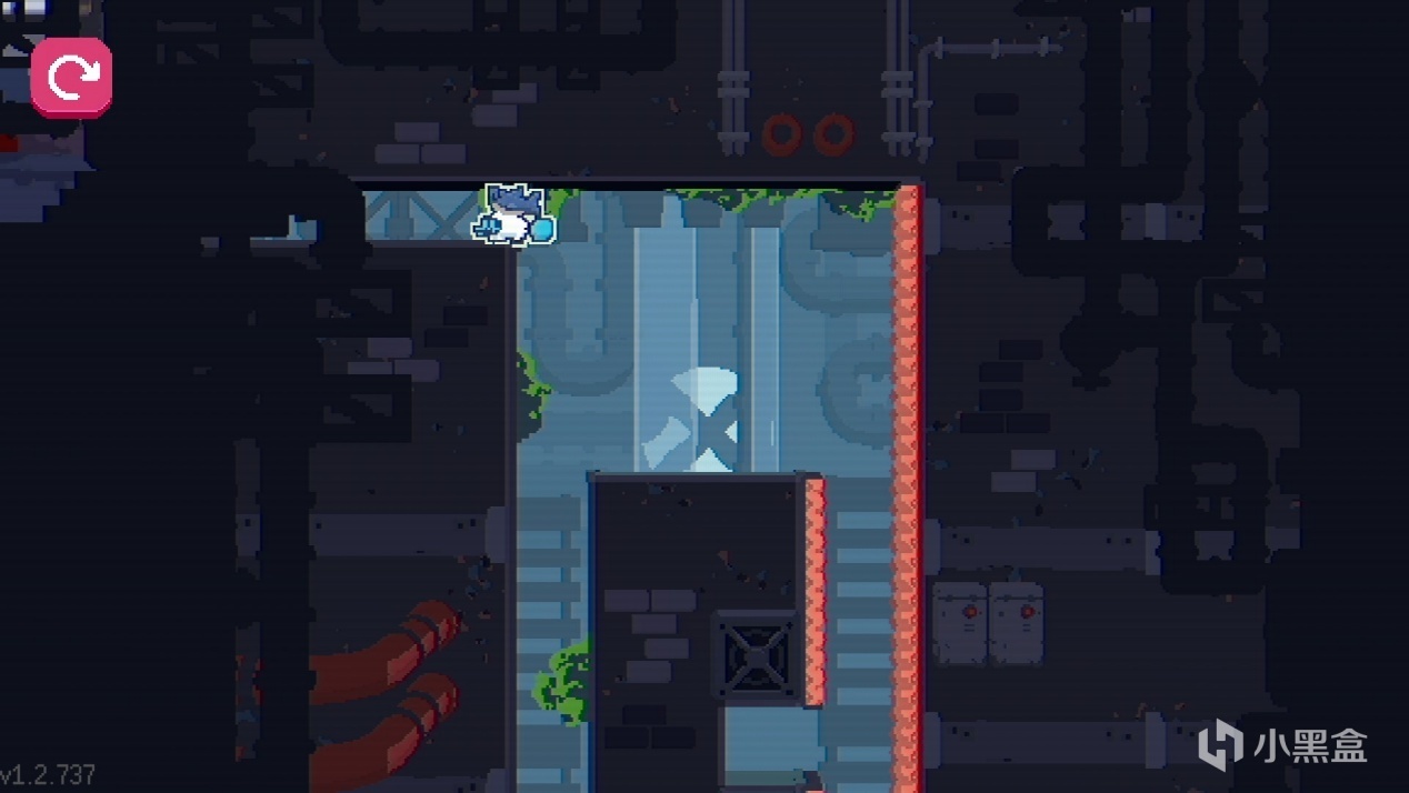 想要到达该地点,你需要先继续前进,把下一幕的假吐司和黑球拿到,然后继续前进到下下一幕,让假吐司和猫咪分别踩到两个触发器上,然后让吐司和猫咪原路返回到刚跌下来的这一幕,到上面触发即可进入。(关卡在WO5-L25)