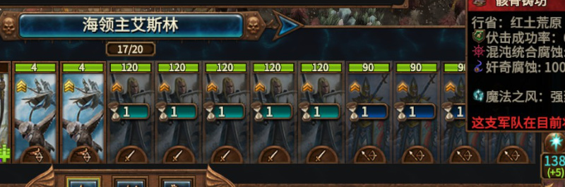 据我所知,这种设计在整个三部曲里很少出现。哪怕是较弱的猎帅和影王,他们的特色兵种在主队里,也是能当主力的。但艾斯林不同,他的战斗特色似乎不是围绕单一兵种展开的——如果你非得玩成那样的话,也可以无脑出水元素——而是一整套的战斗体系。
