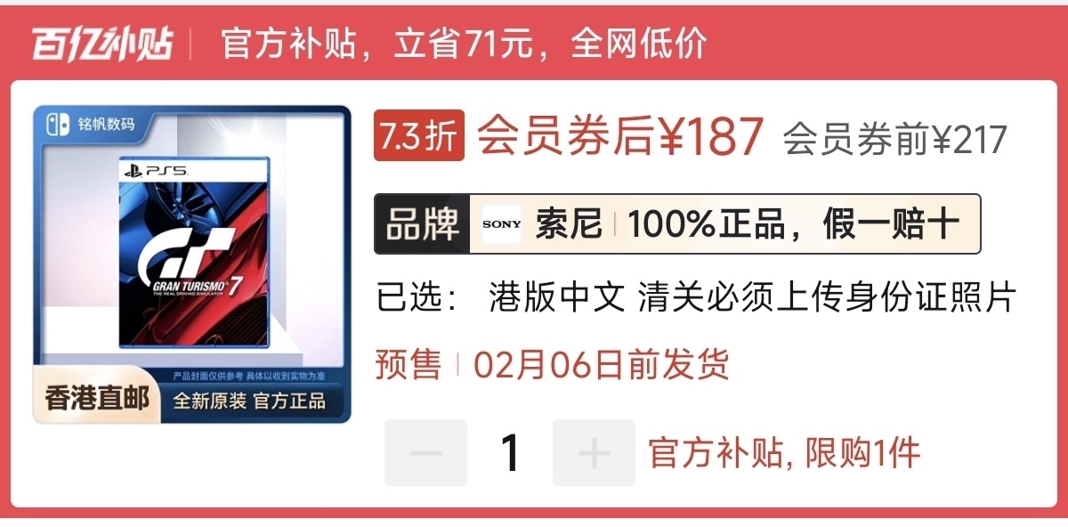 本周好价187元(v3券),史低187元(消费券)