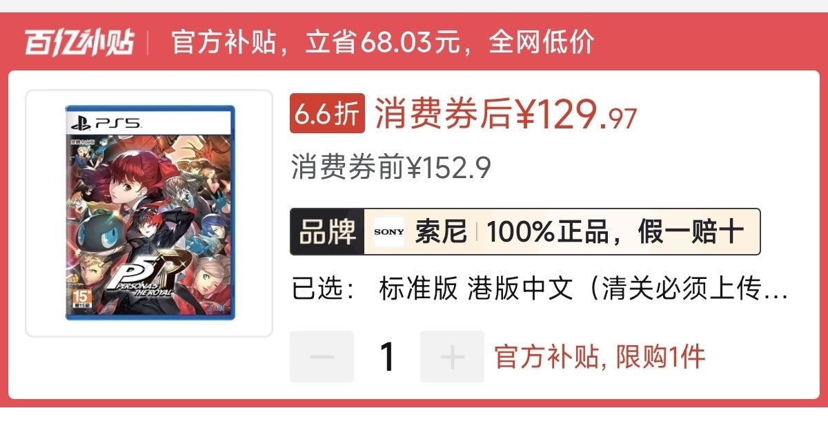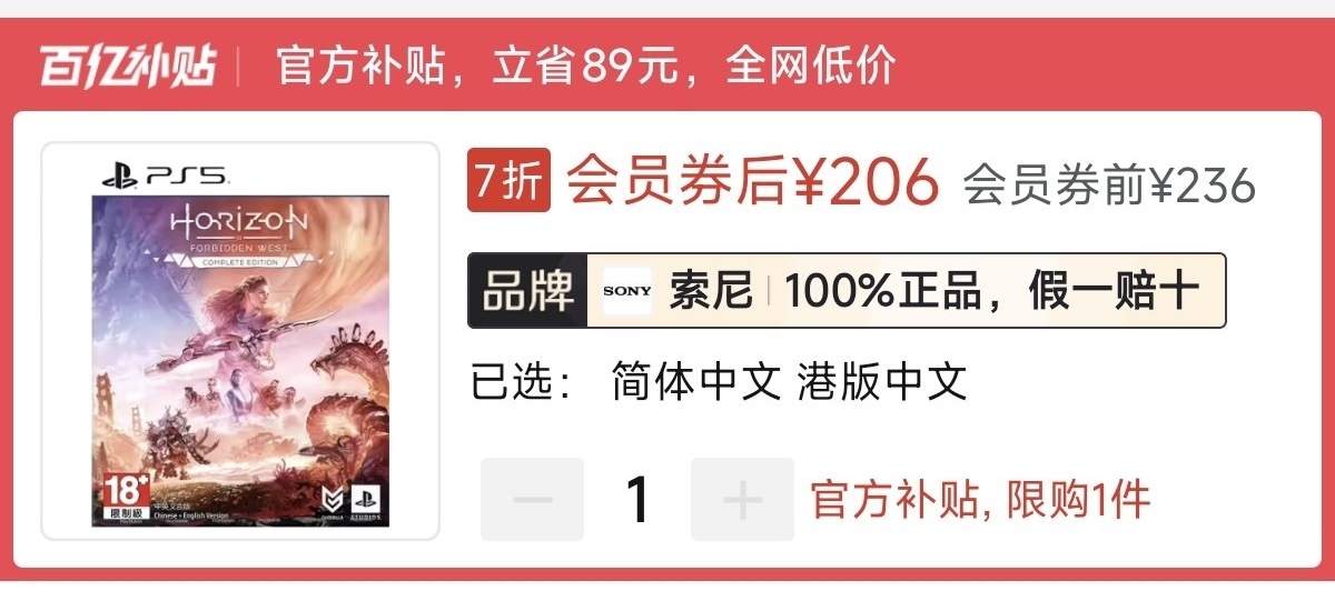 本周ps5版无好价,史低104元(消费券)