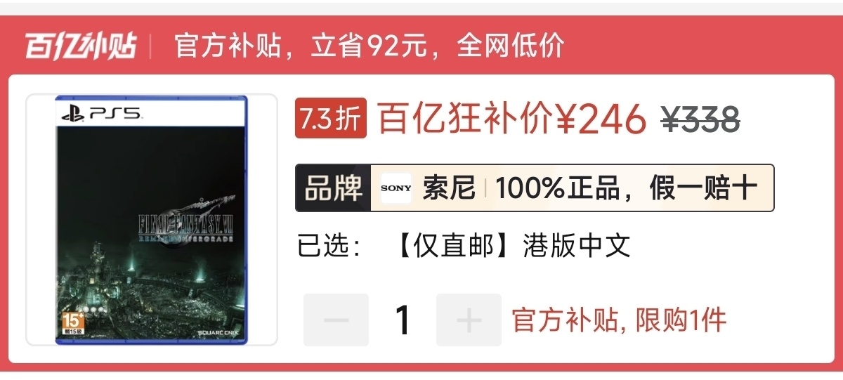 本周ps5版好价247元(-30积分券)