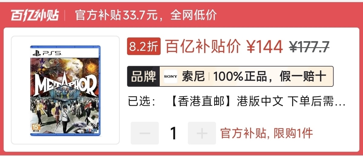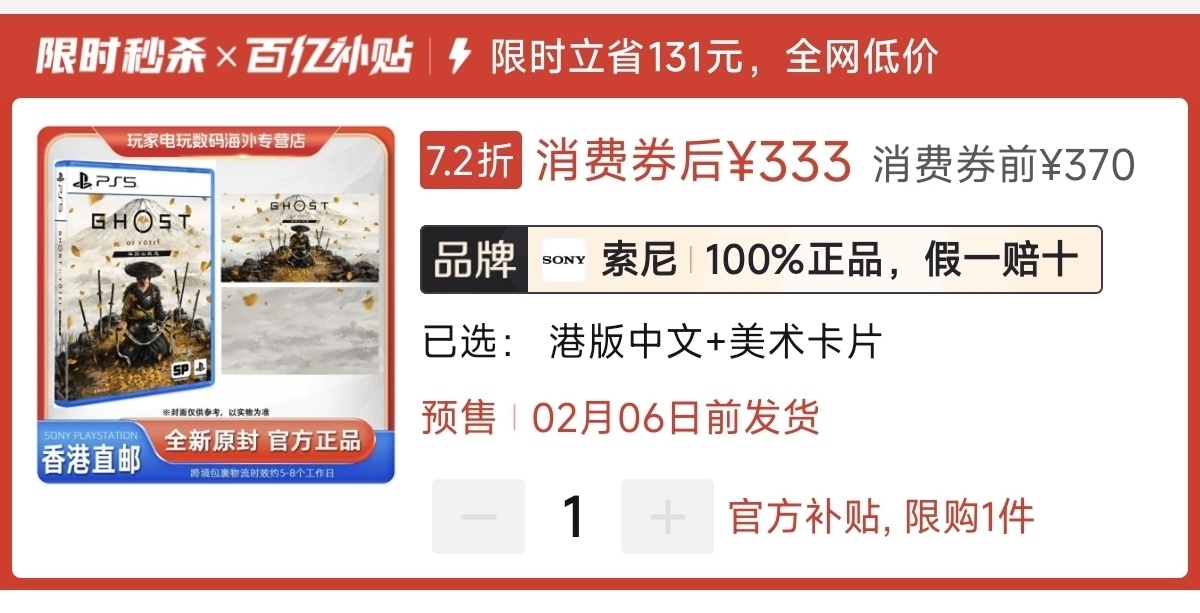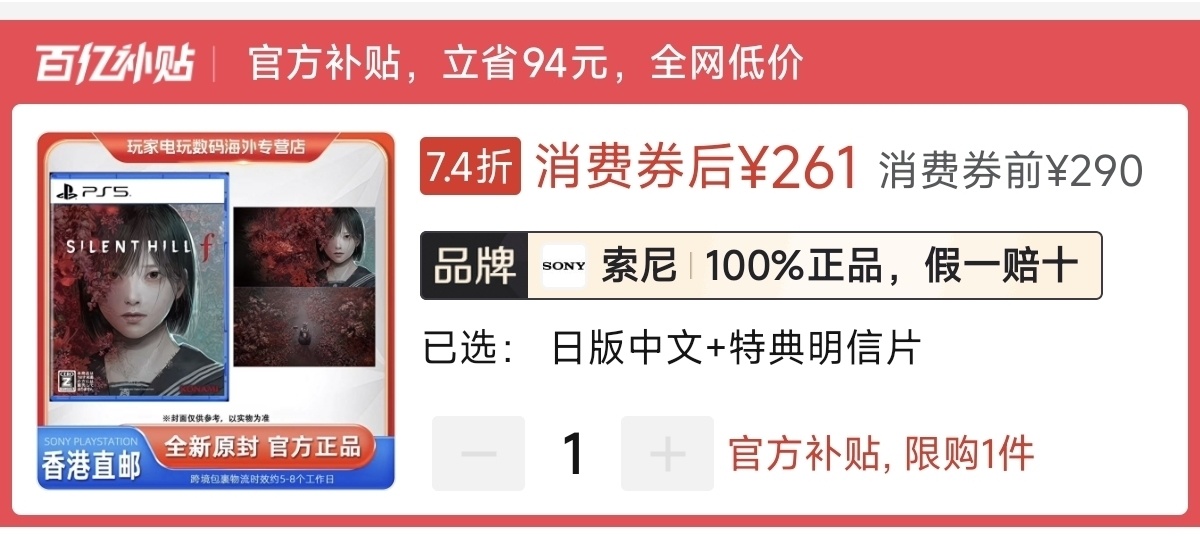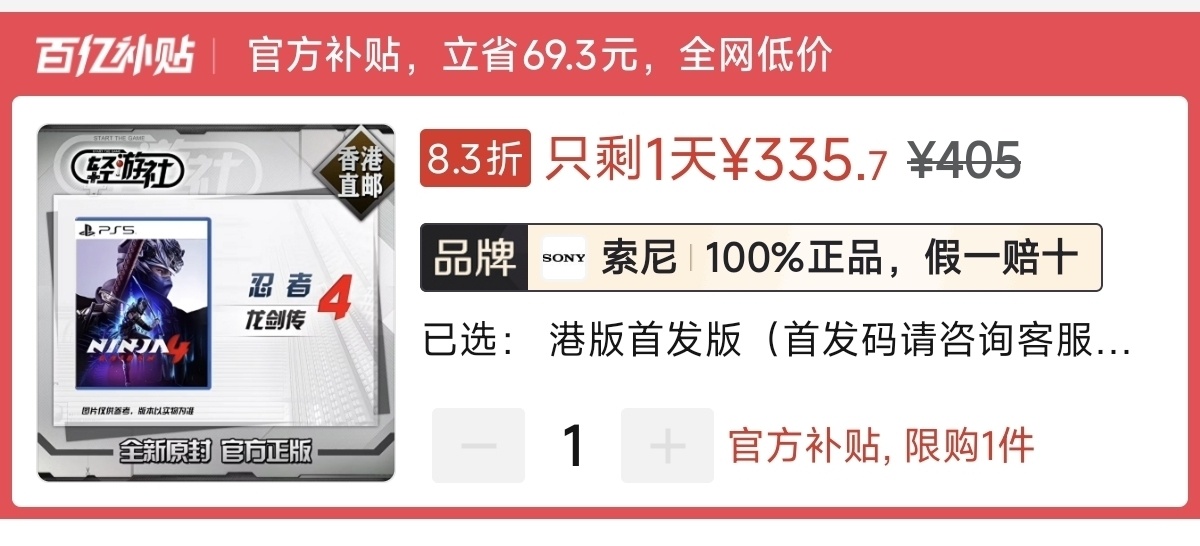 本周港版好价333元(消费券),史低日版269元(消费券)