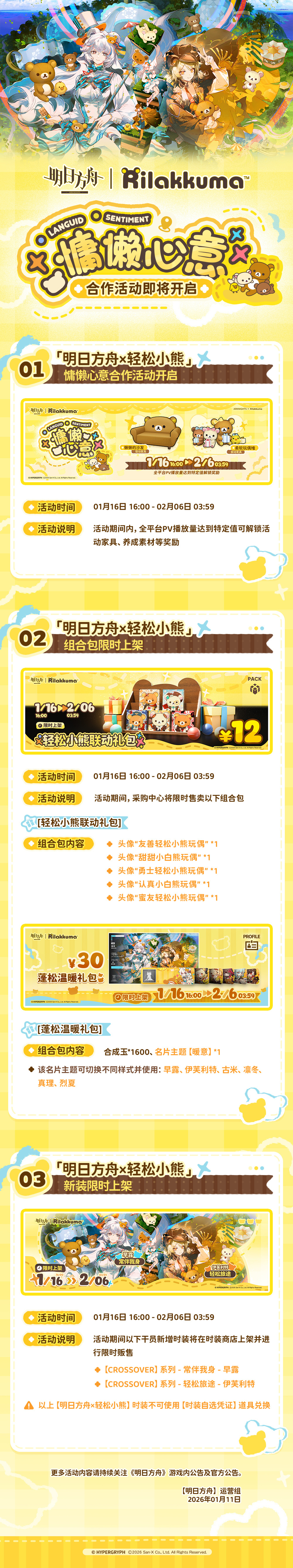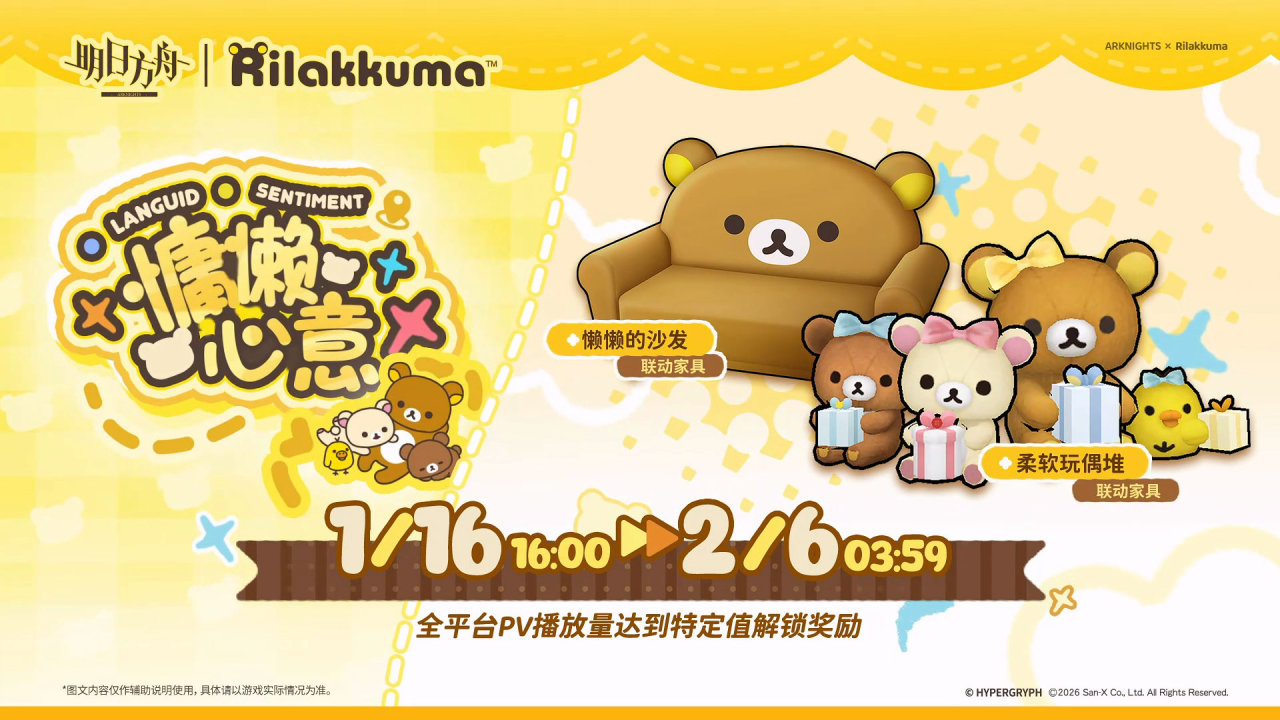 《明日方舟》x《轻松小熊》联动合作活动「慵懒心意」1月16日正式开启!