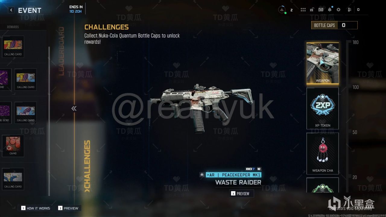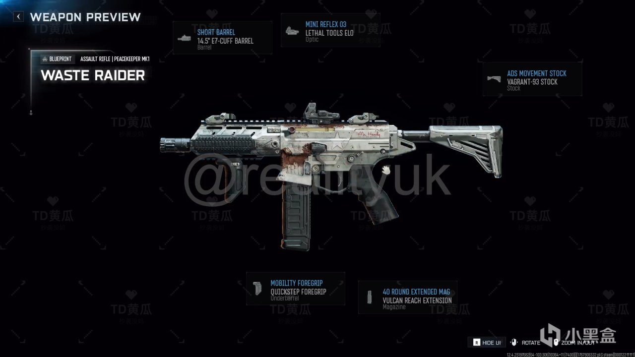 进度奖励:Peacekeeper MK1蓝图、挂饰等
