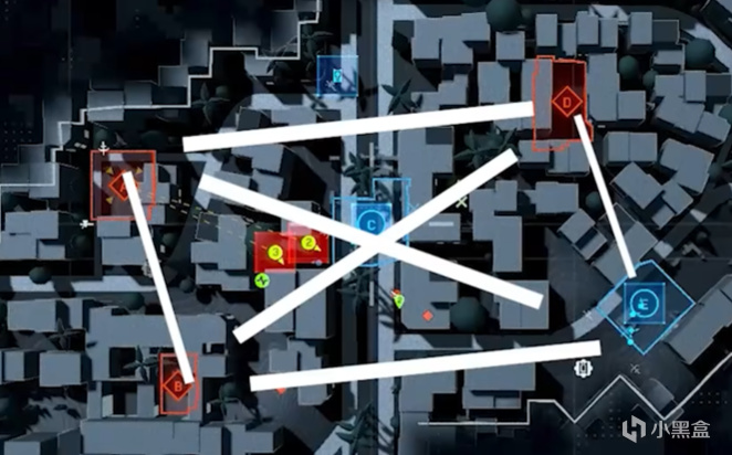 嗯,這個時候就不得不掏出這張截圖以展現隔壁親愛的三角洲攻防地圖設計師那高超的地圖理解了。如果B點拿下了,周邊區域可以得到更好的控制,直接走旁邊主路切到A點後方顯然是更好的選擇。