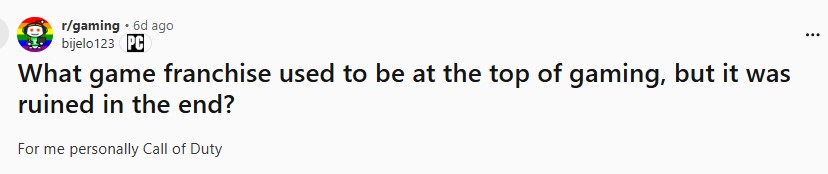 近日,reddit平台上,一位用户发帖讨论,其主题是【"有哪些游戏系列曾是业界顶流,却慢慢把自己口碑弄没了?"】。