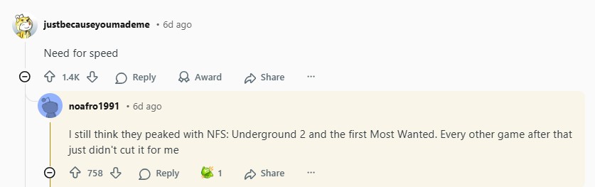 NOAFRO1991:我仍然认为他们的巅峰是《极品飞车:地下狂飙2》和第一部,之后的每一款游戏对我来说都不够好。