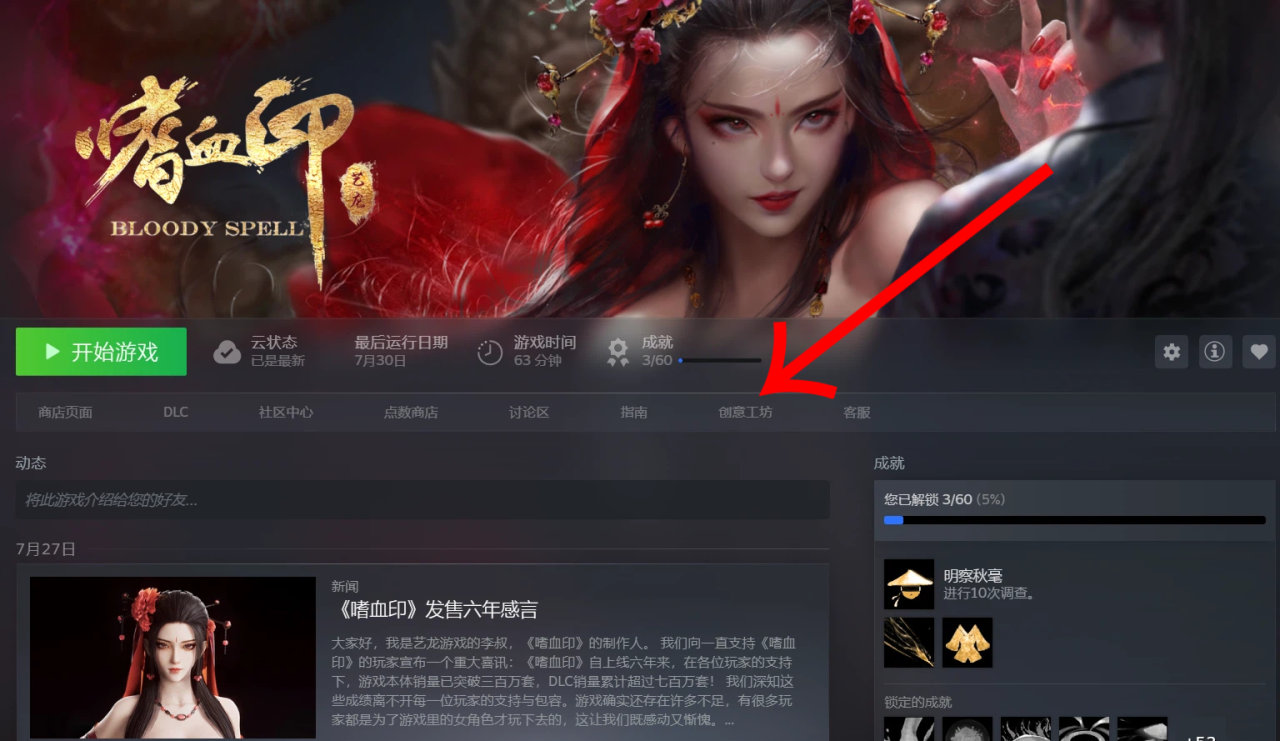 1.进入游戏,点击创意工坊