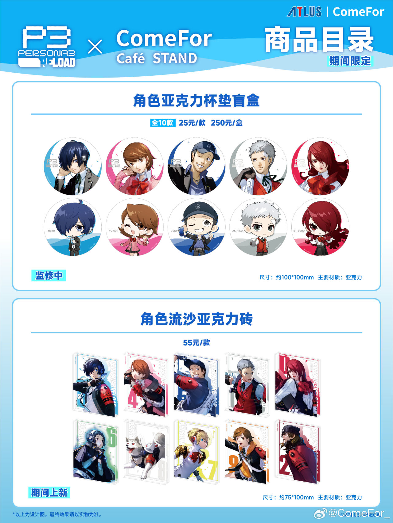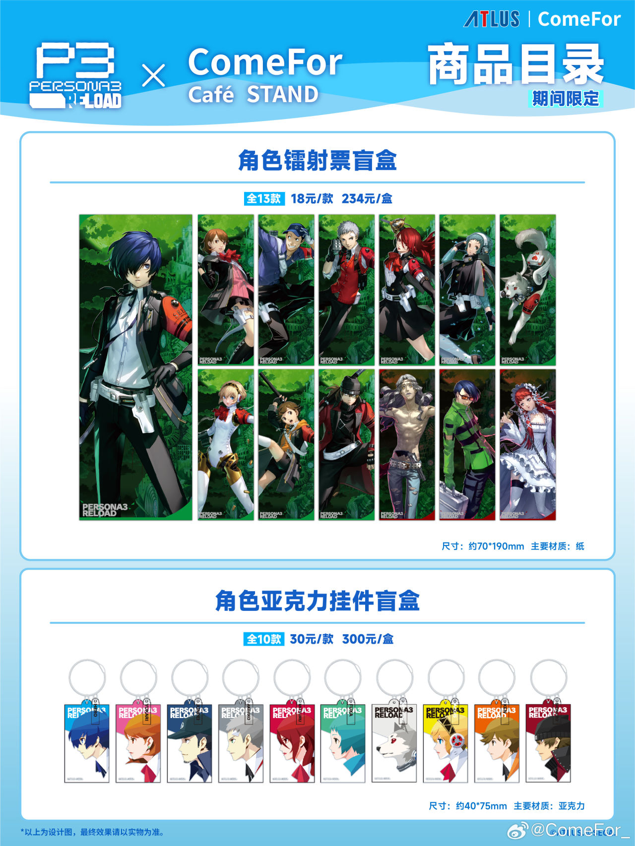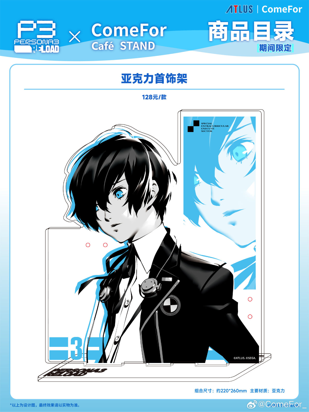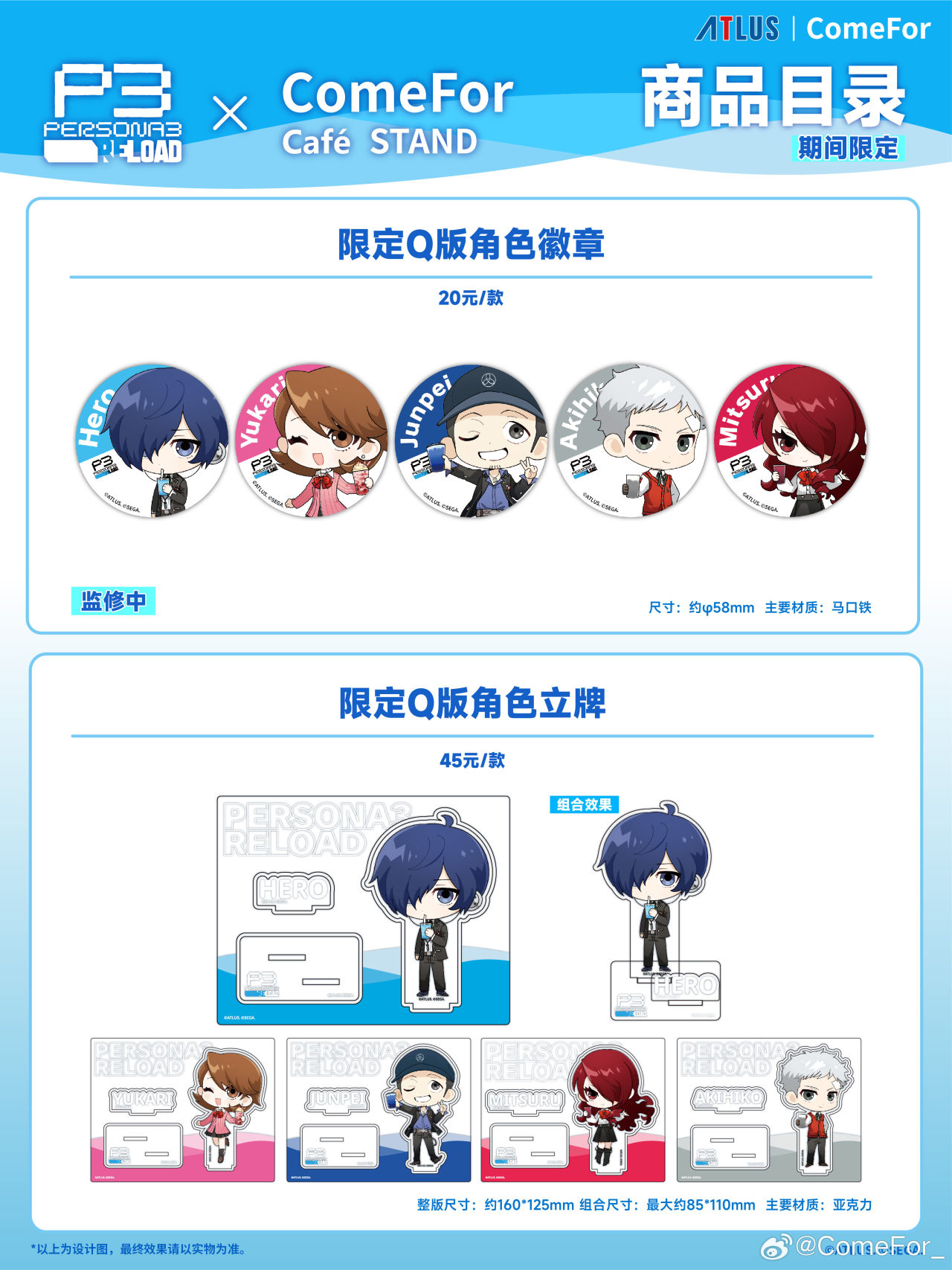 今日,ComeFor官方公布P3R主题限定Café全新周边&商品活动详情(第一弹商品目录)。